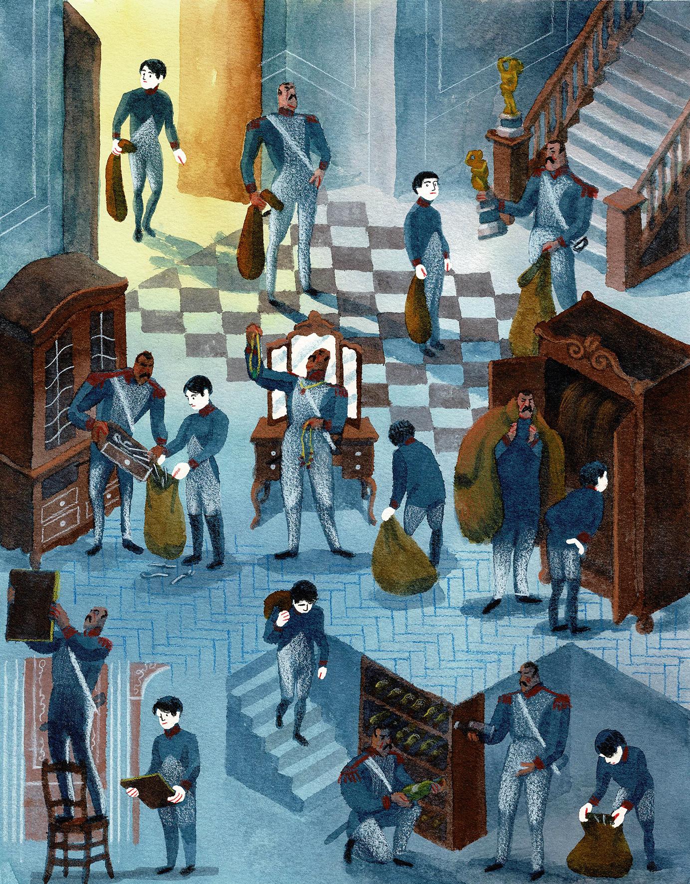 Le tambour de la Moskova, planche originale à l’aquarelle pour cet album paru en 2021 au Lombard. Dimensions : 40,5 cm x 29,5 cm.