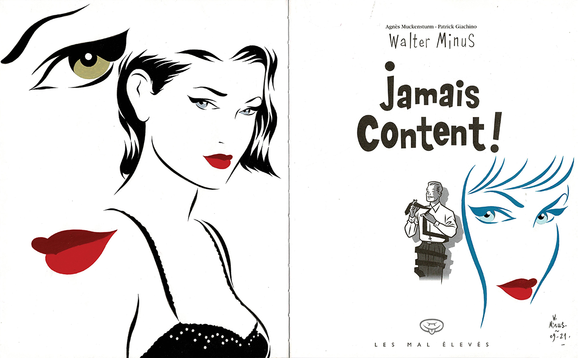 Jamais Content !, en édition originale, agrémenté d’une dédicace. Proche de l’état neuf.