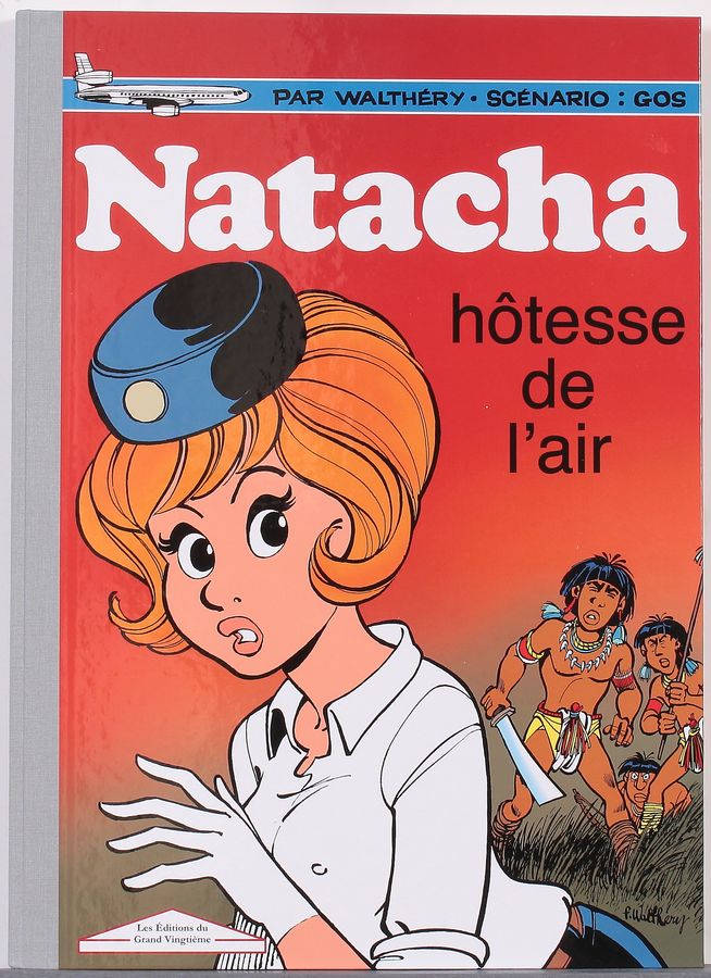 Natacha hôtesse de l’air en tirage de luxe « Editions du grand vingtième » limité à 495 ex., agrémenté d’une dédicace rappelant la couverture de l’album « Natacha – Nostalgia ». Etat neuf.