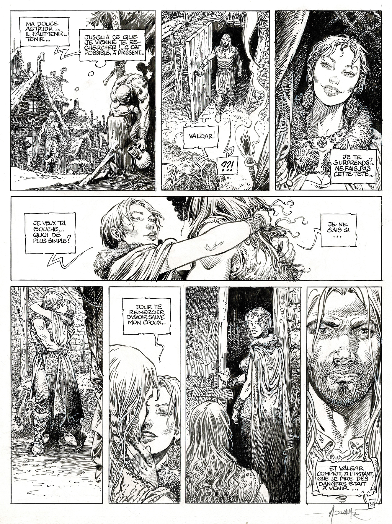 Saga Valta, Tome 1, planche originale à l’encre de chine pour cet album paru en 2012 au Lombard. Dimensions : 50 cm x 39 cm.