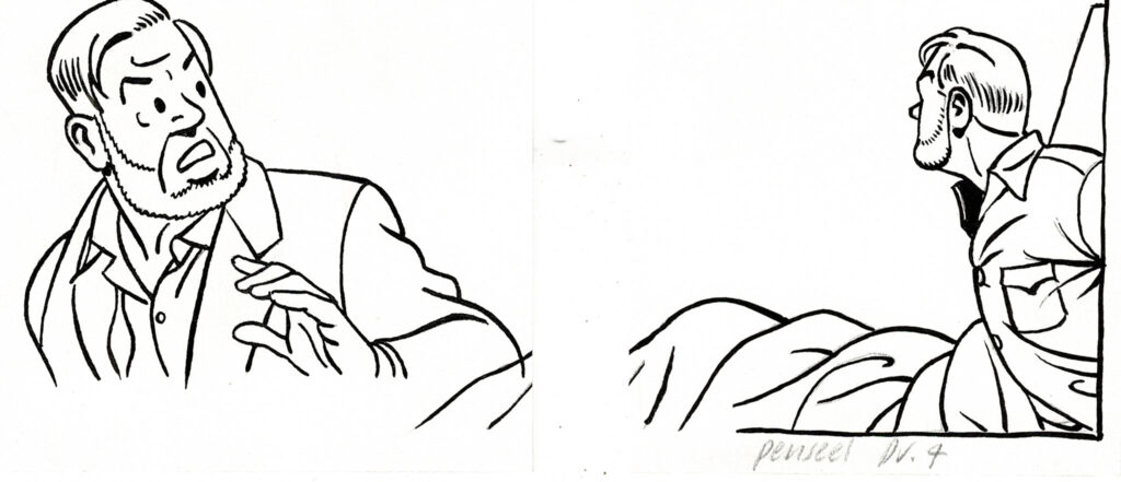 Blake et Mortimer, ensemble de 2 petits dessins originaux à l’encre de chine.