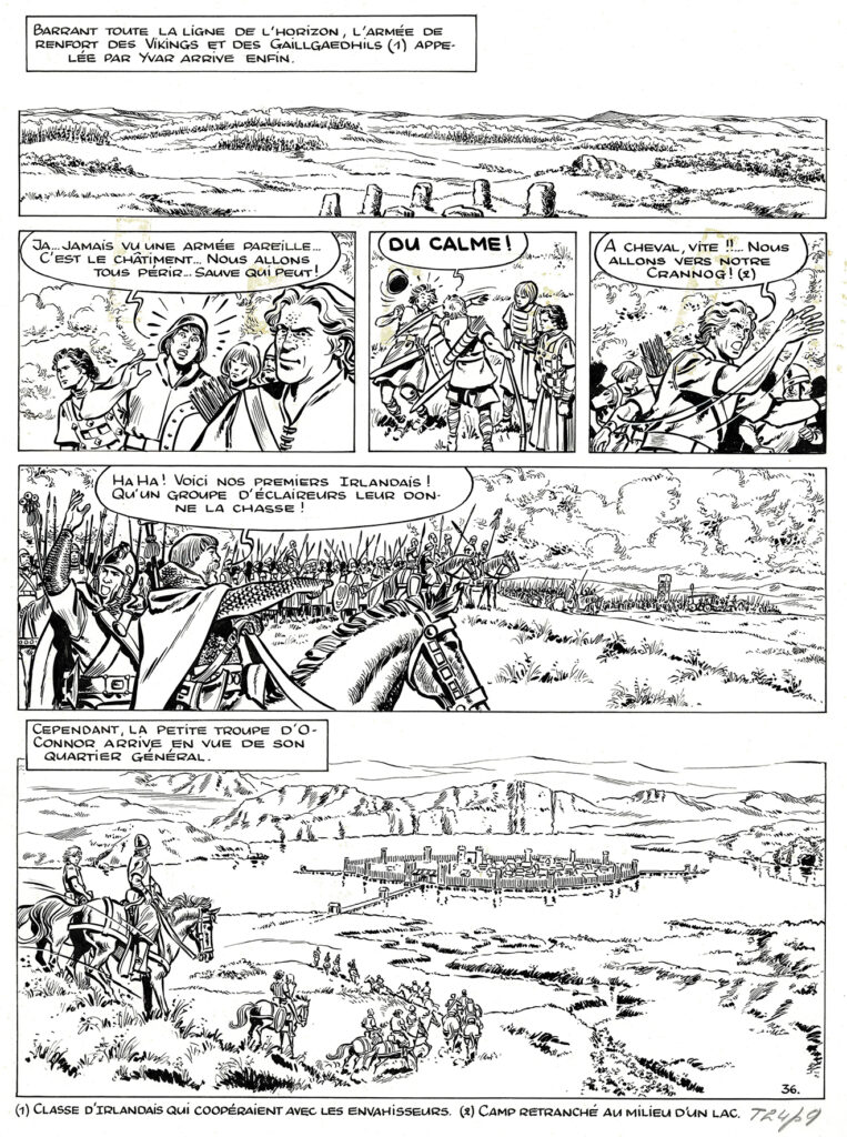Chevalier Ardent, La harpe sacrée, planche originale à l’encre de chine. Dimensions : 49,5 cm x 35 cm.