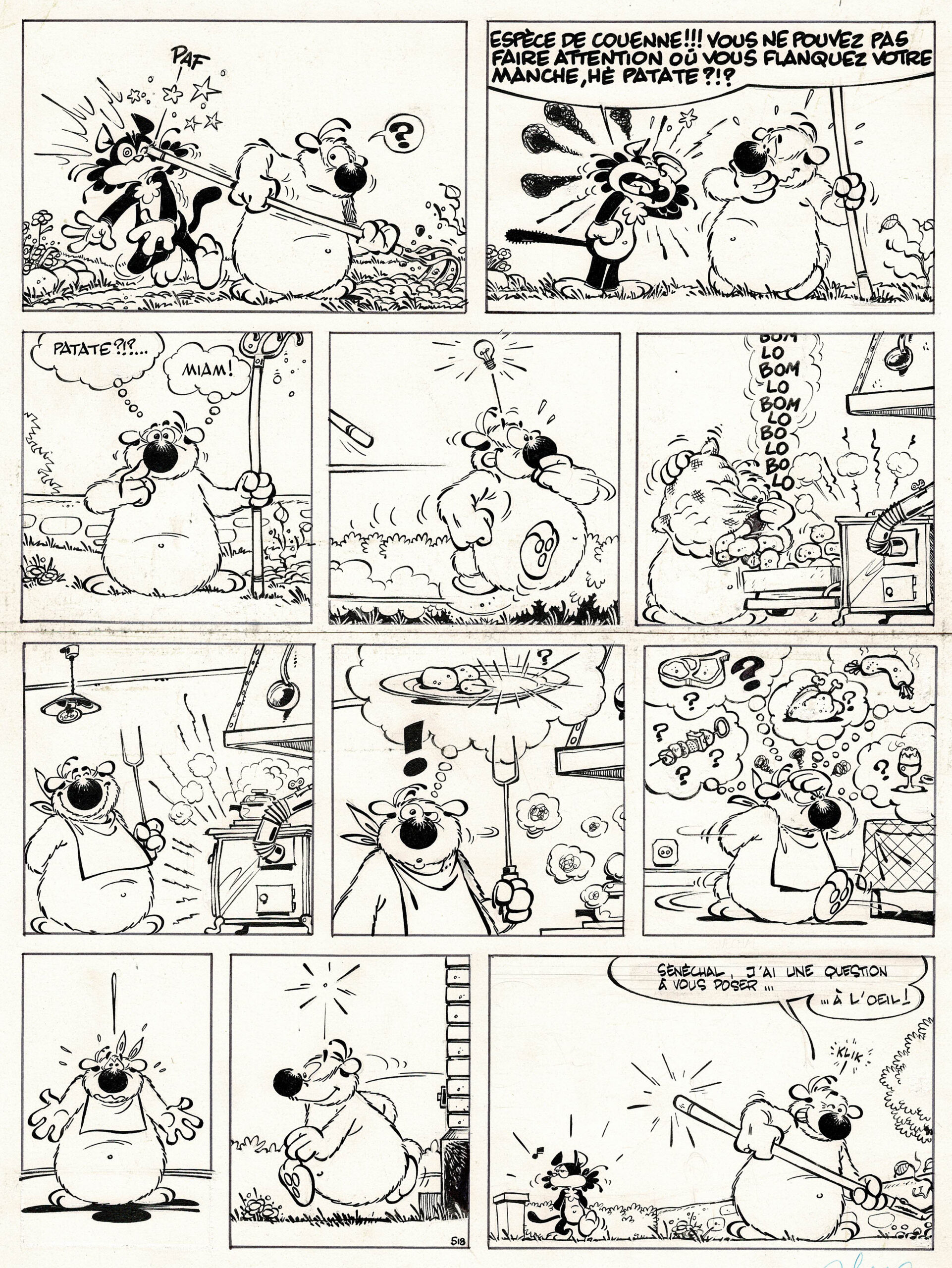 Cubitus, planche originale à l’encre de chine. Dimensions : 40 cm x 30,5 cm.