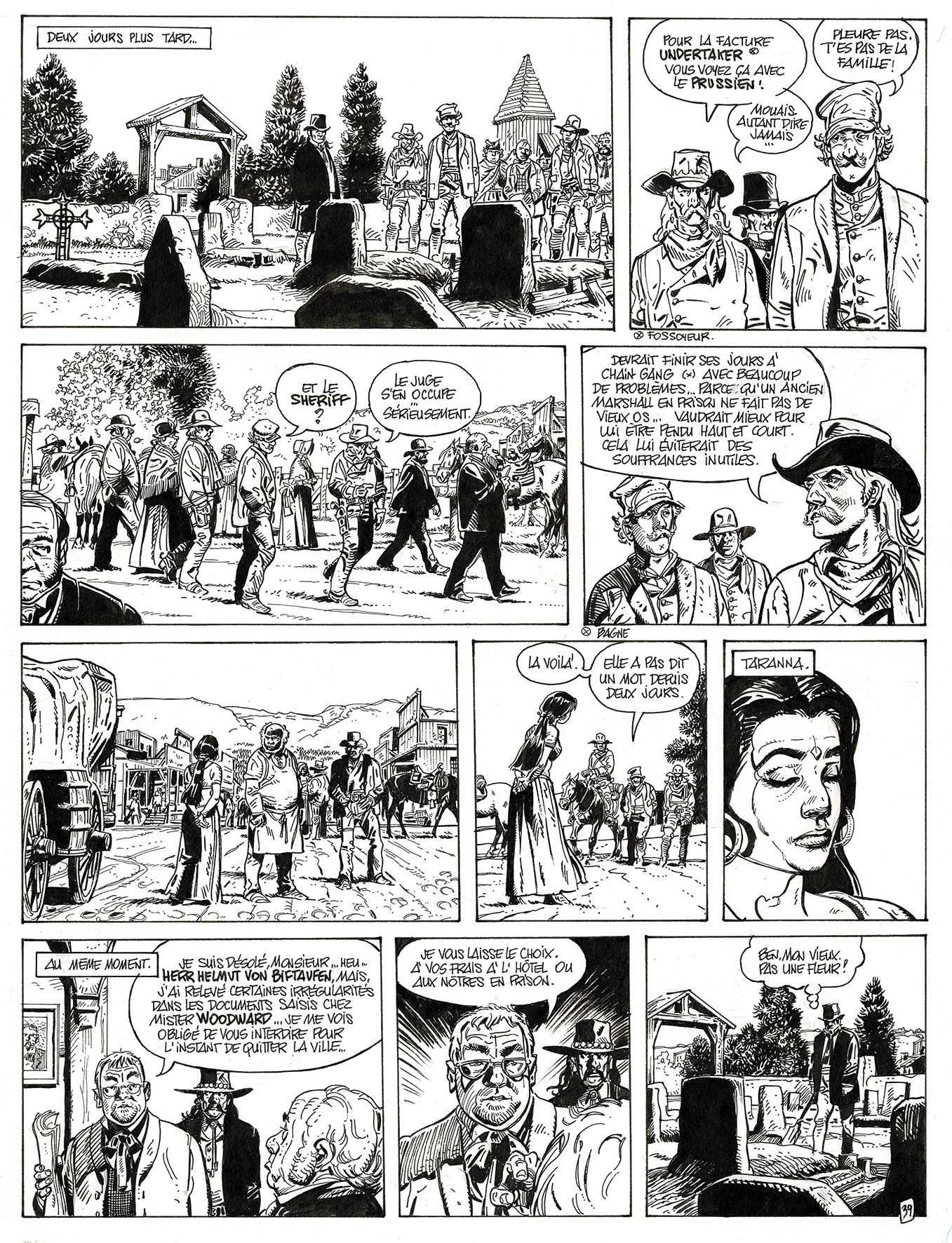 Lester Cockney, Oregon Trail, planche originale à l’encre de chine. Dimensions : 44,5 cm x 32,5 cm.