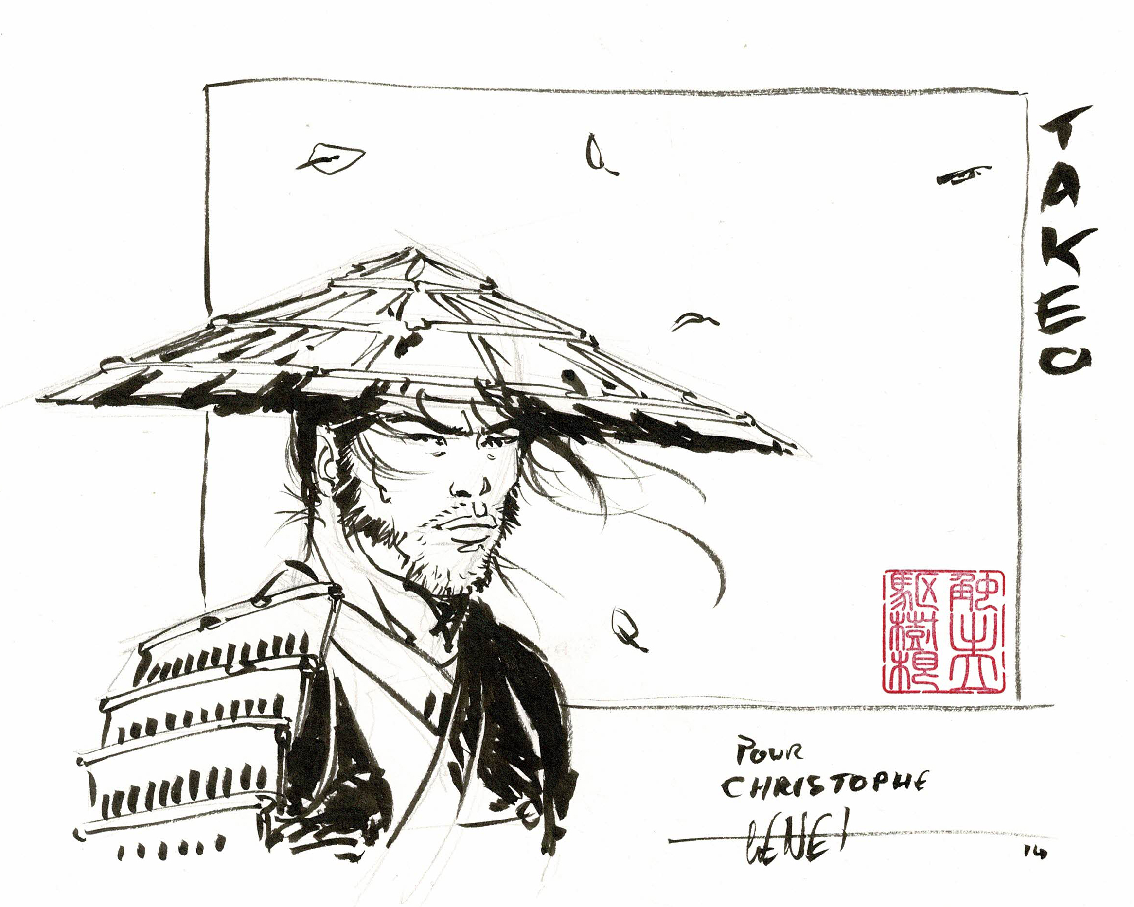 Samurai, dessin original à l’encre de chine. Dimensions : 29,5 cm x 21 cm.