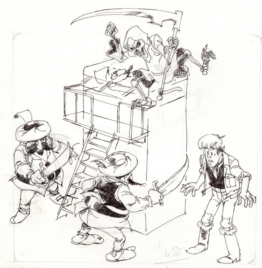 Martin Milan, Mille ans pour une agonie, projet de couverture original au feutre fin pour cet album paru en 1978 chez Dargaud. Dimensions : 38,5 cm x 37,5 cm.