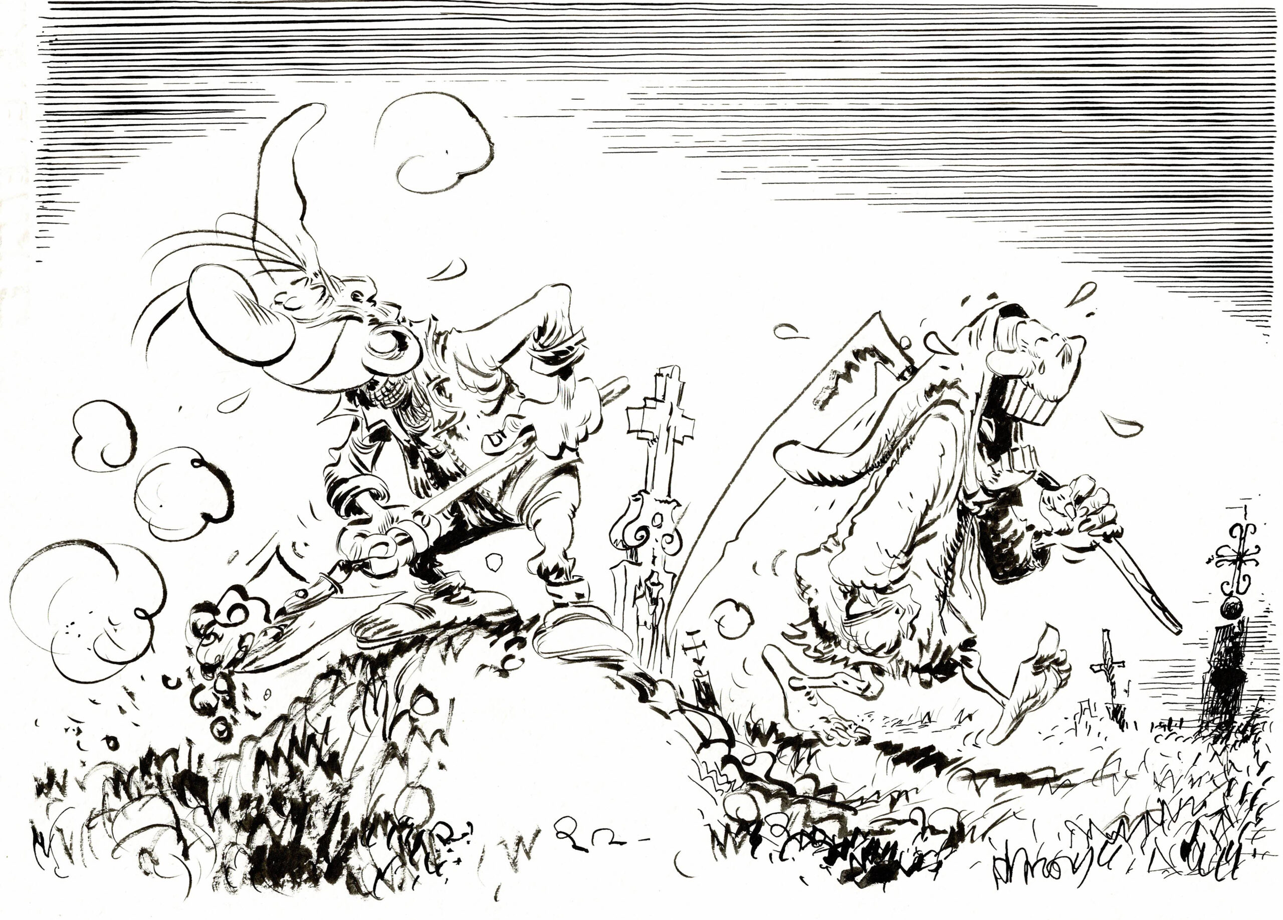 Pierre Tombal, dessin original à l’encre de chine. Dimensions : 35 cm x 24,5 cm.