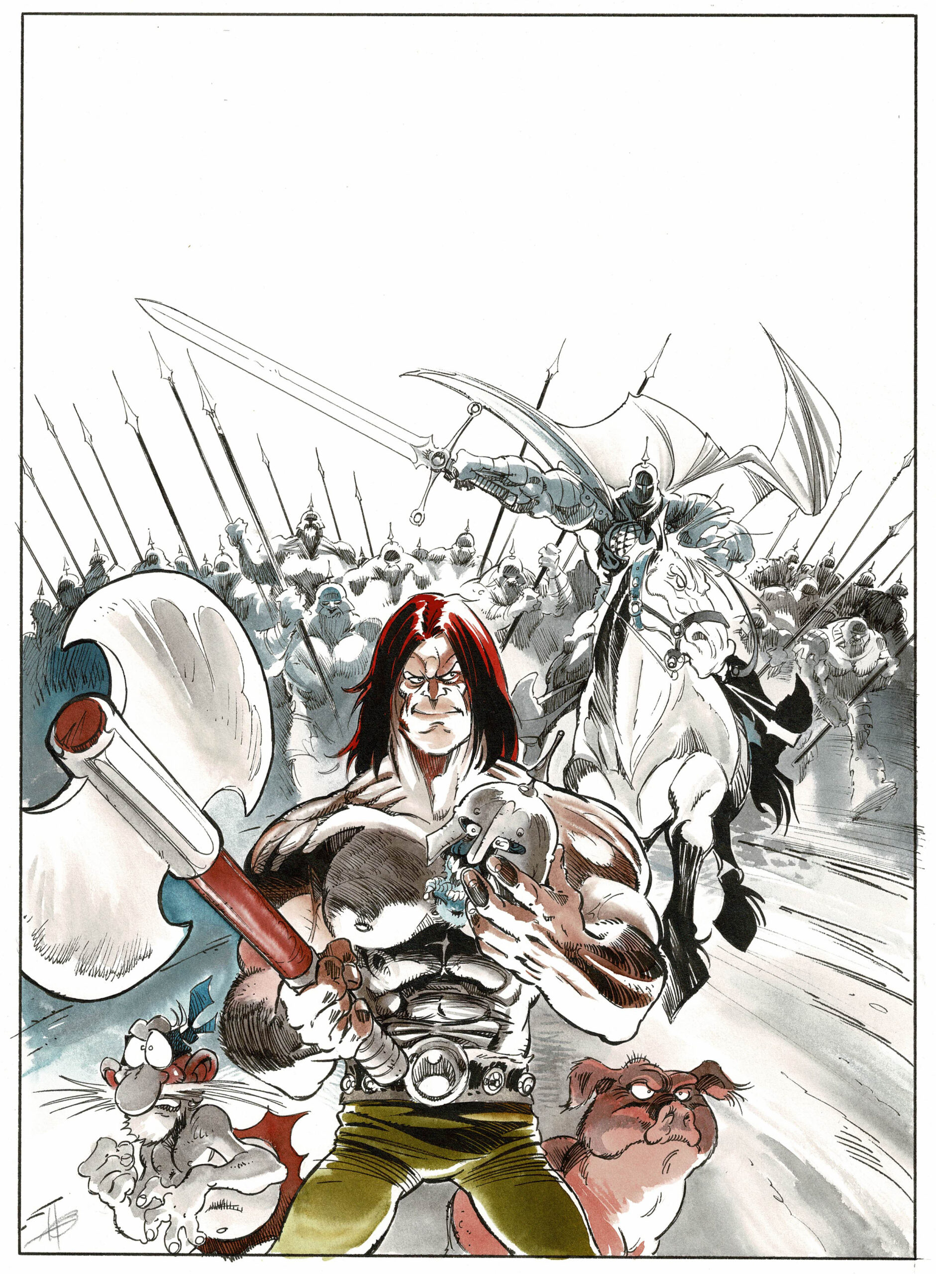 Krän, L’invasion des envahisseurs, couverture originale à l’encre de chine et à l’aquarelle pour cet album paru en 2002 chez Vents d’Ouest. Dimensions : 37,5 cm x 28,5 cm.