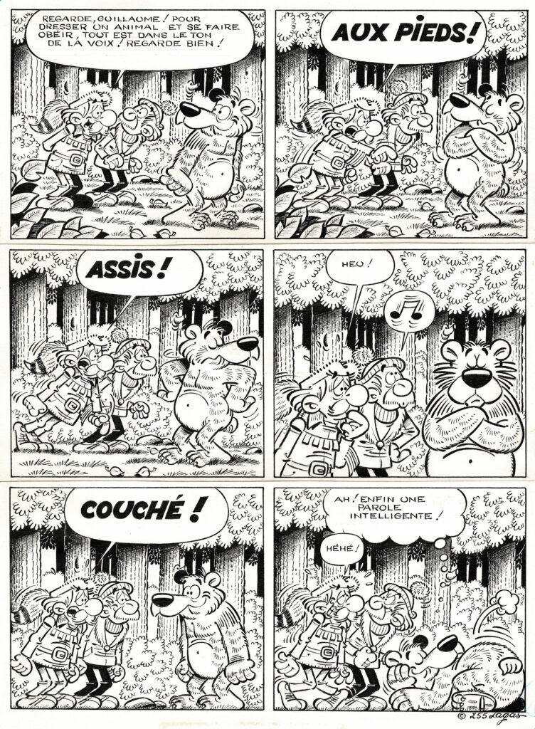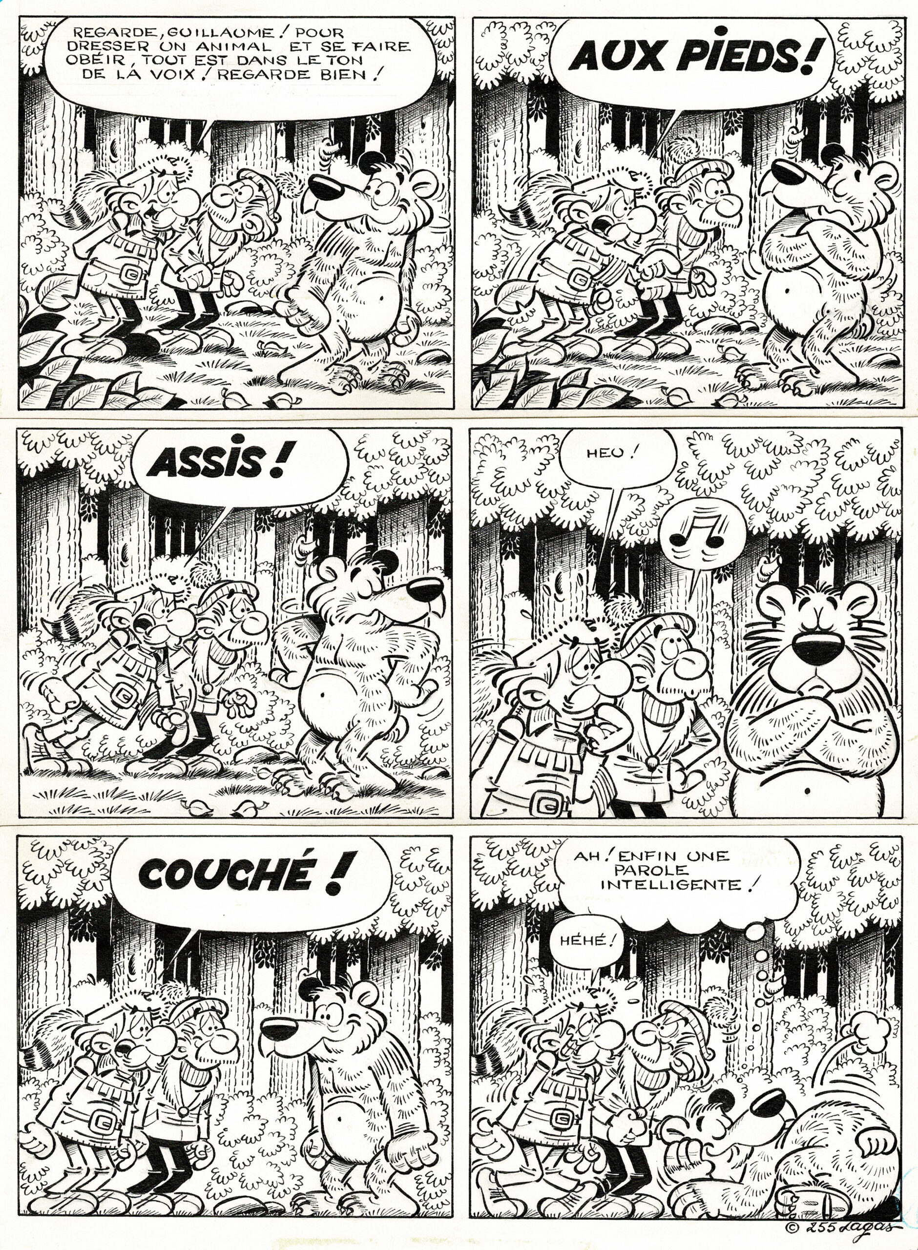 Sam et l’ours, planche originale à l’encre de chine. Dimensions : 38 cm x 29 cm.