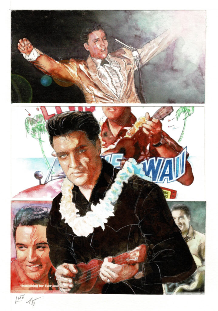 Elvis, planche originale en couleurs directes. Dimensions : 42 cm x 29,5 cm.