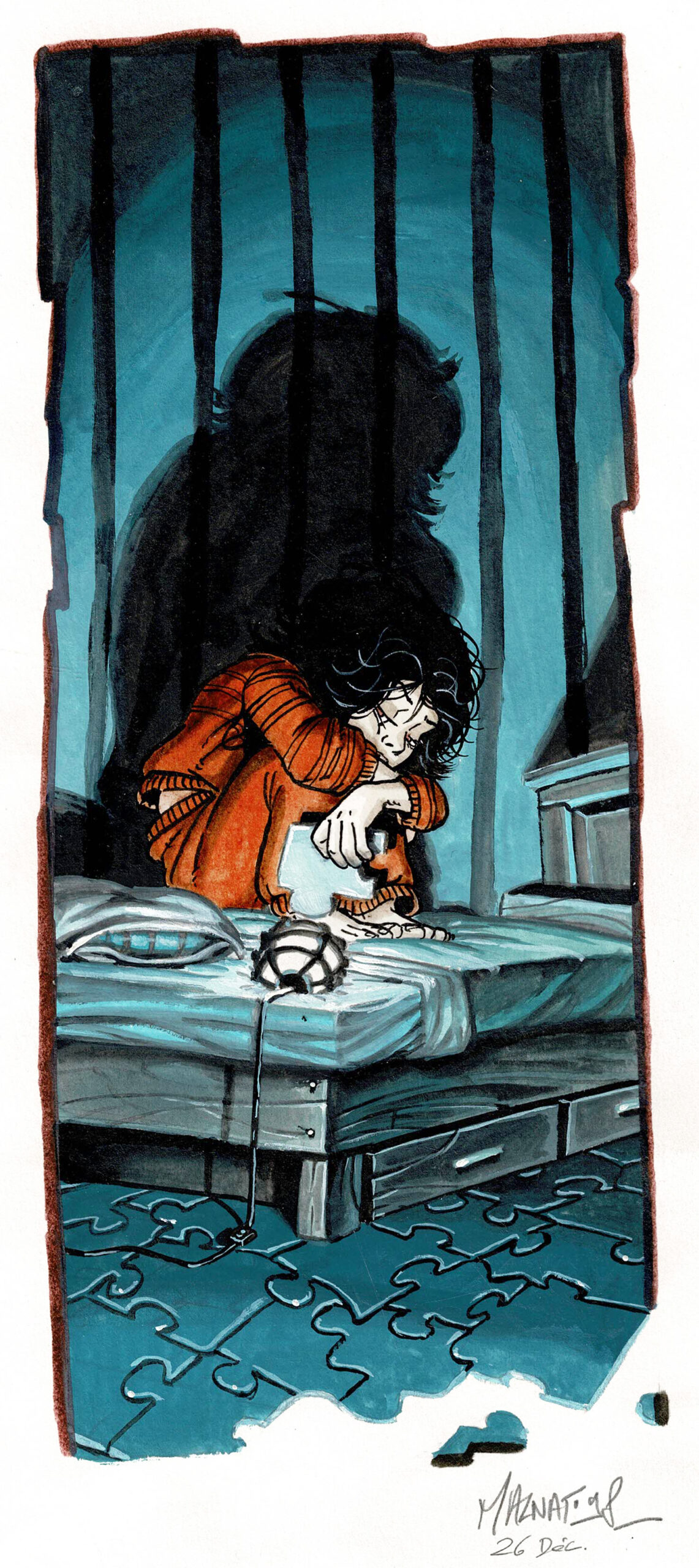 Anahire, dessin original à l’encre de chine et à la gouache. Dimensions : 30 cm x 15,5 cm.
