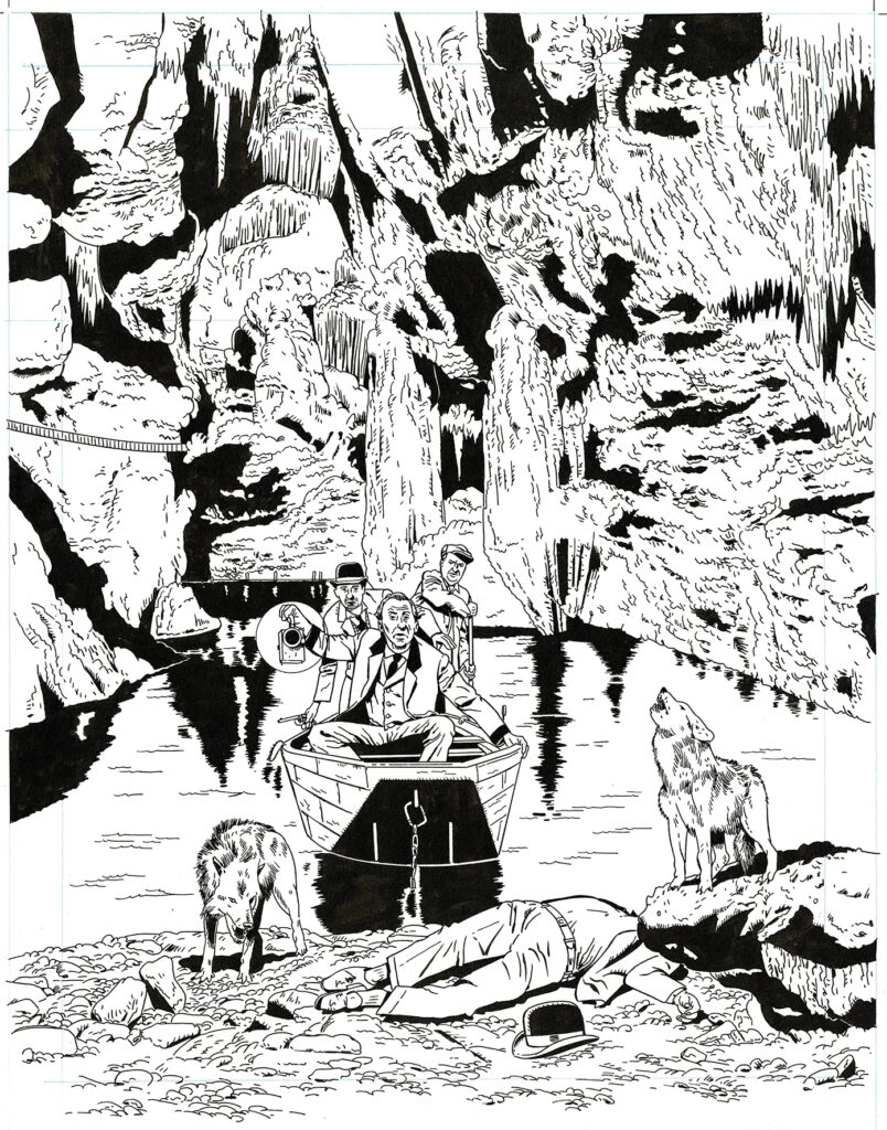 La brigade de l’étrange, Le mystère des hommes sans tête, couverture originale à l’encre de chine pour cet album paru en 2006 chez Albin Michel. Dimensions : 44,5 cm x 35 cm.