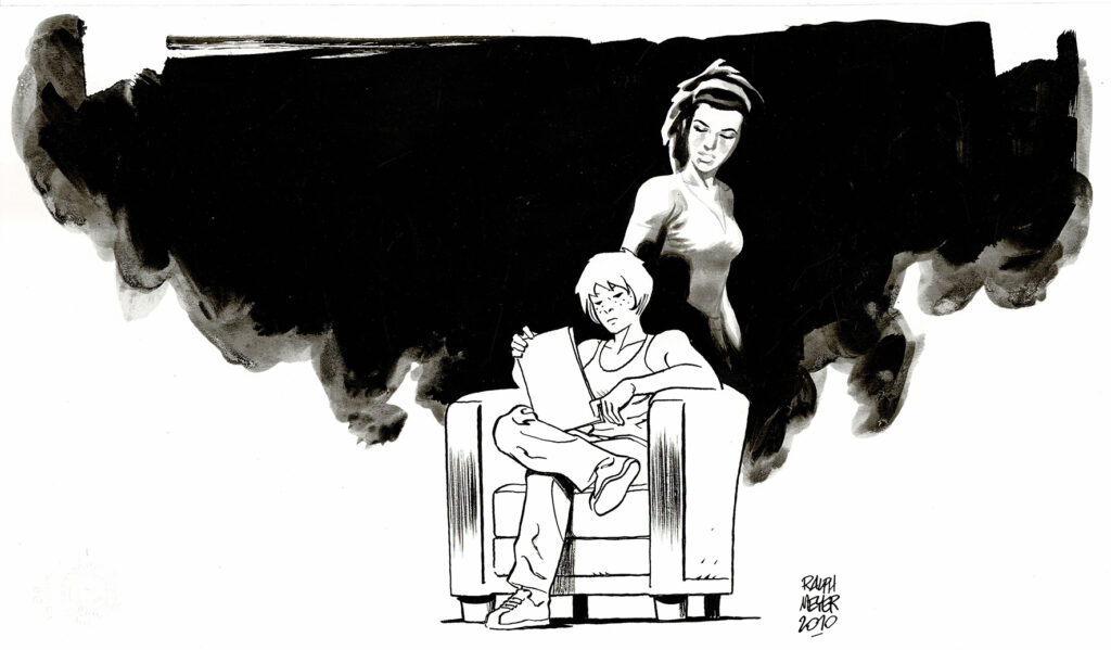 Page Noire, couverture originale à l’encre de chine pour cet album paru en 2010 chez Futuropolis. Dimensions : 36 cm x 20 cm.