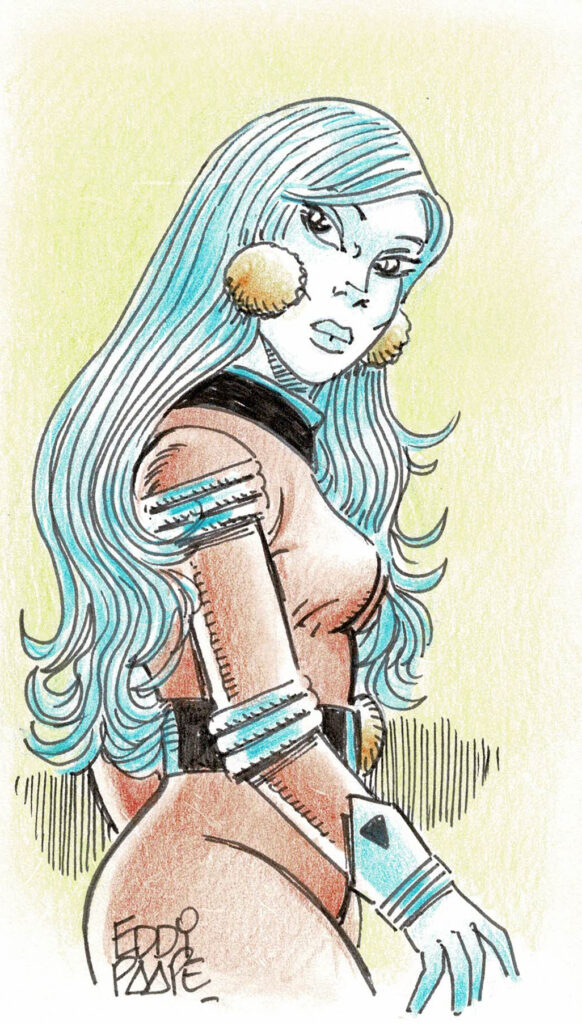 Luc Orient, dessin original à l’encre de chine et à l’aquarelle. Dimensions : 15,5 cm x 9 cm.
