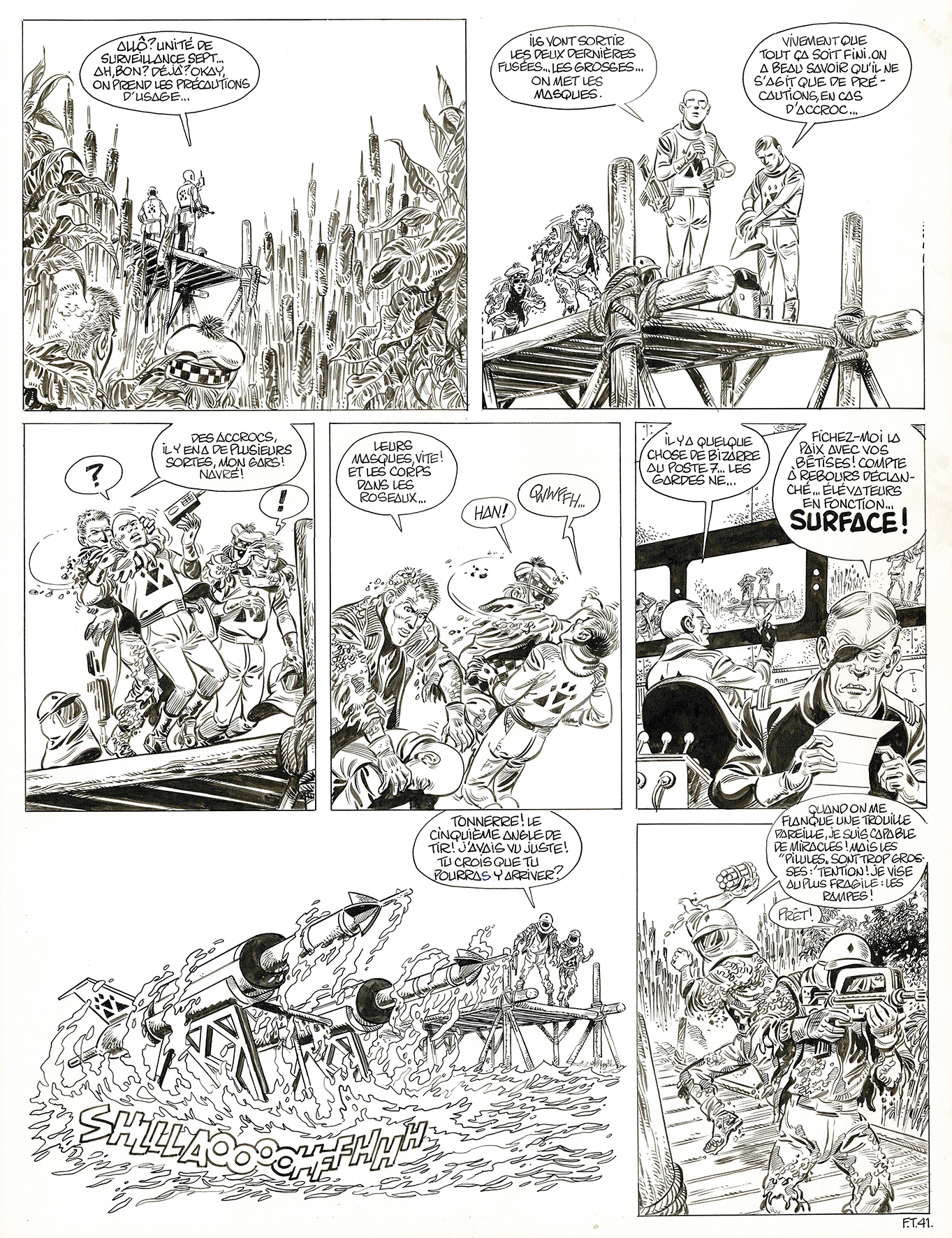 Johnny Congo, La flèche des ténèbres, planche originale à l’encre de chine. Dimensions : 50,5 cm x 36,5 cm.