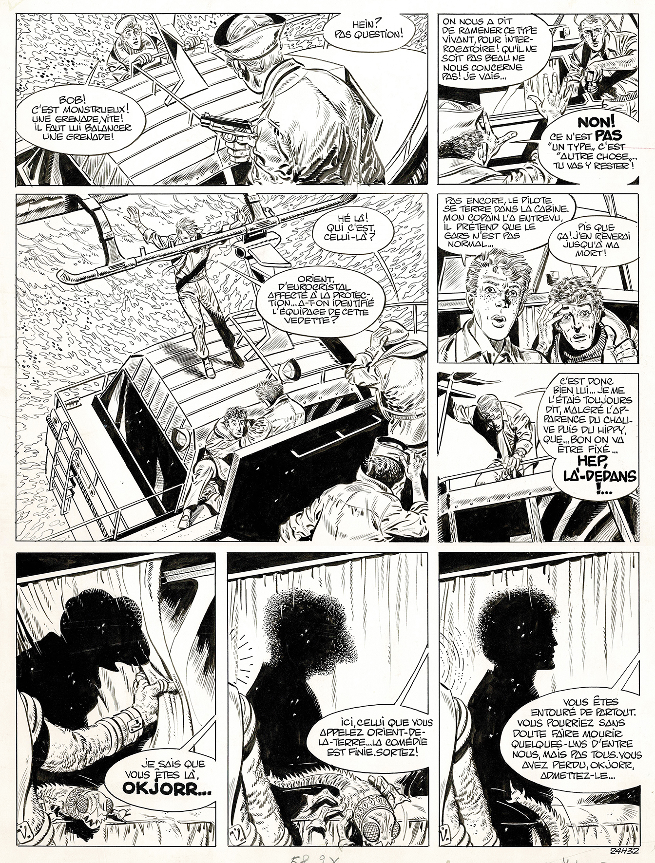 Luc Orient, 24 heures sur la planète terre, planche originale à l’encre de chine. Dimensions : 45,5 cm x 35 cm.