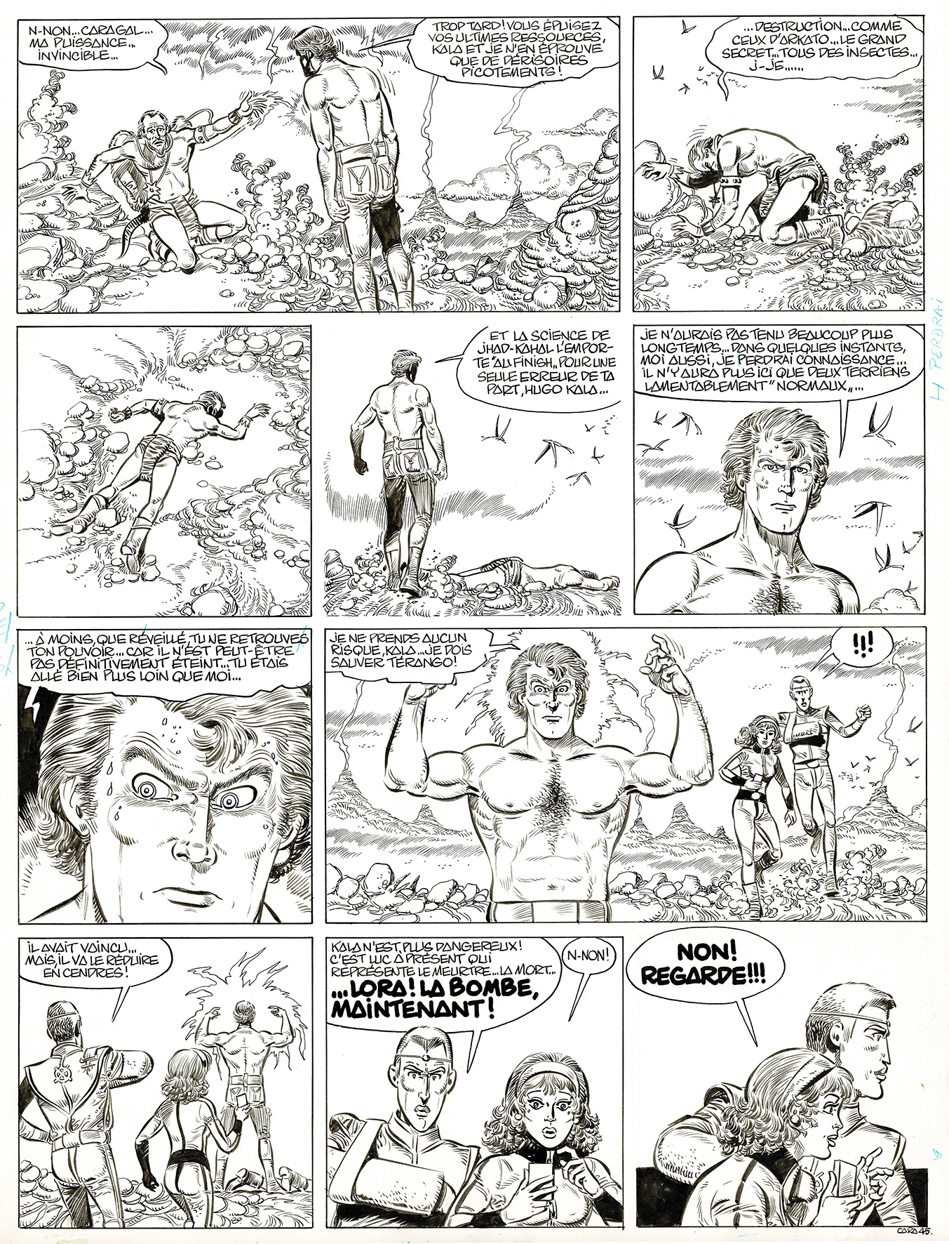 Luc Orient, Caragal, planche originale à l’encre de chine. Dimensions : 51 cm x 36,5 cm.