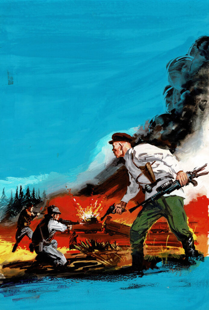 Partisans d’Ukraine, Opération contre la Wehrmacht, couverture originale en couleurs directes. Dimensions : 28,5 cm x 20 cm.