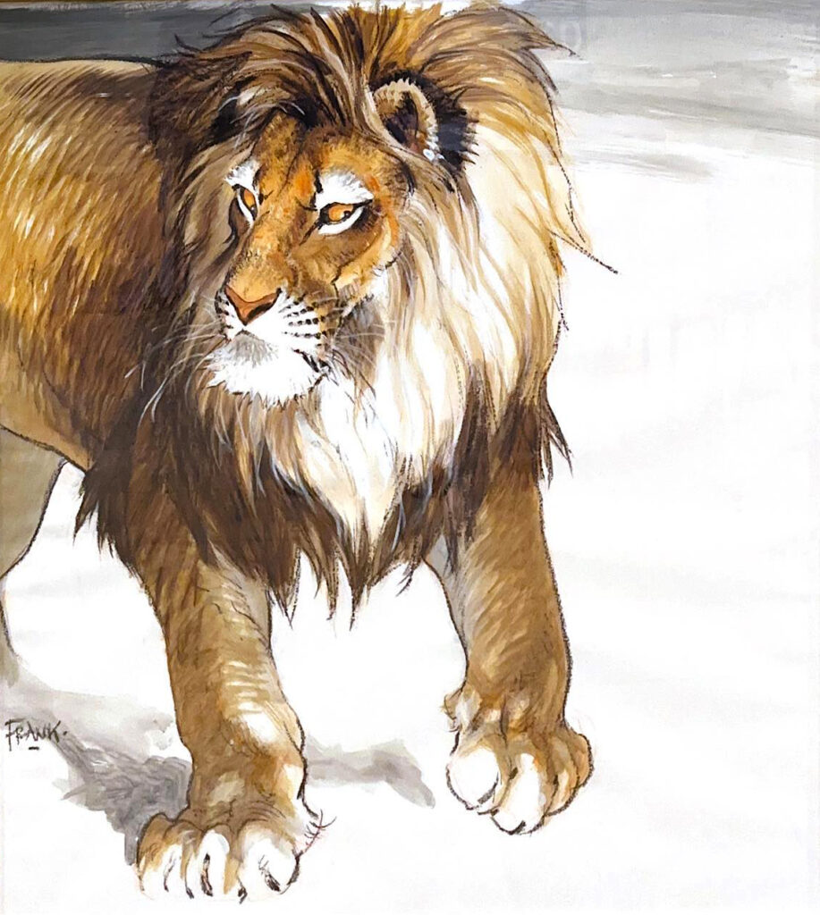 Le Lion, dessin original très très grand format à l’aquarelle et à l’acrylique. Dimensions : 100 cm x 100 cm.