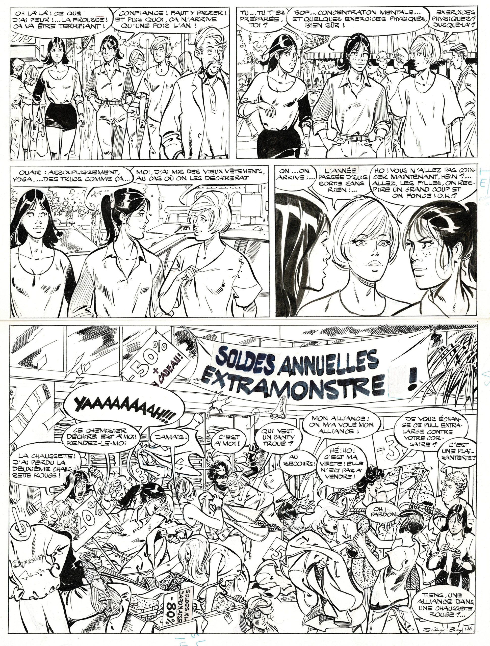 Julie, Claire, Cécile, planche originale à l’encre de chine. Dimensions : 42,5 cm x 33 cm.