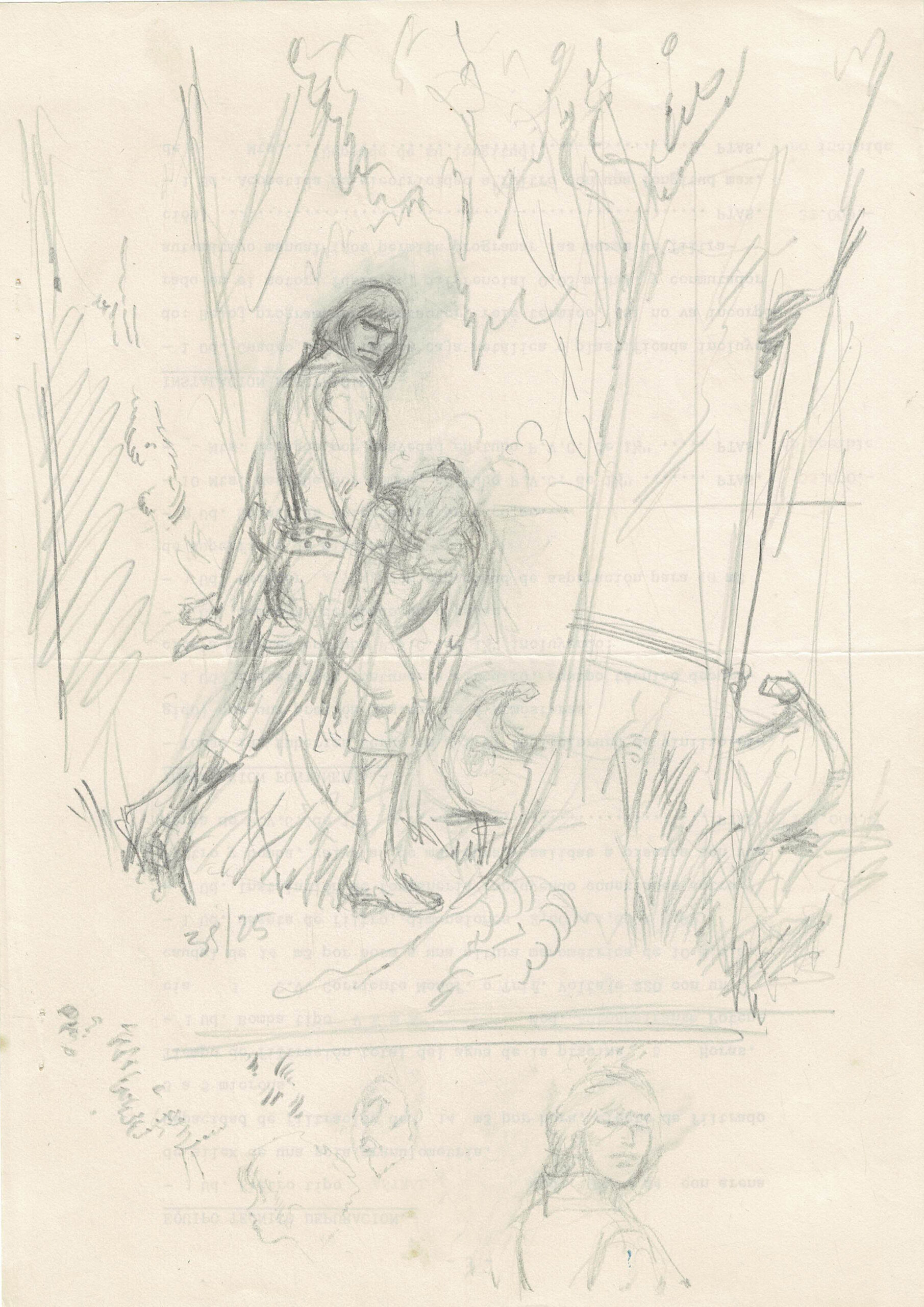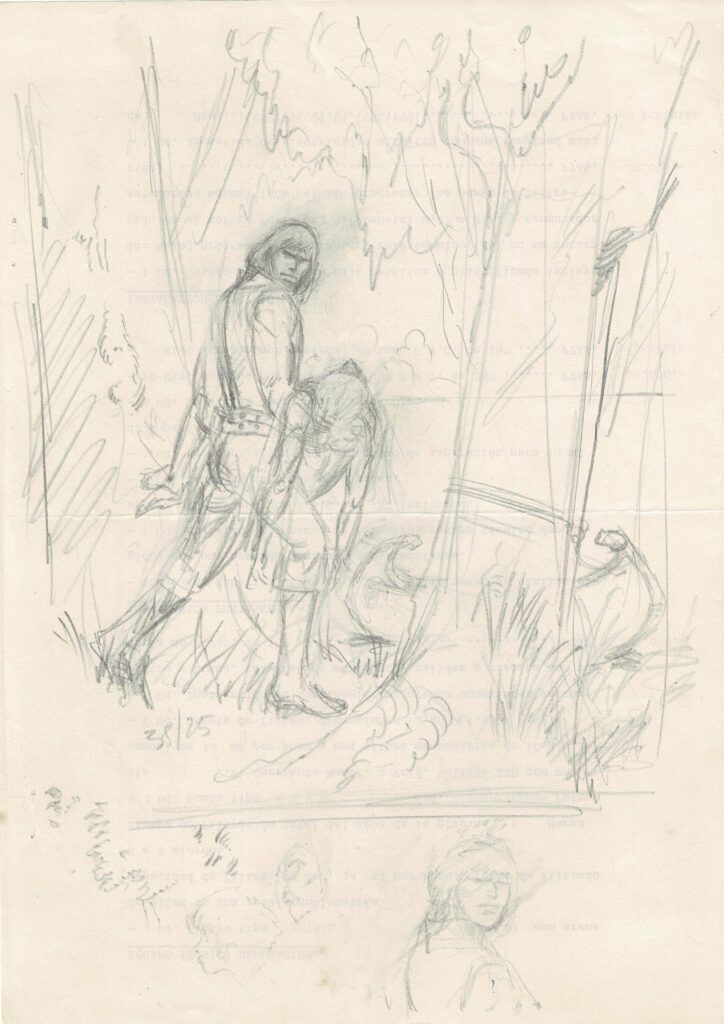Dessin original préparatoire à la mine de plomb. Dimensions : 29,5 cm x 21 cm.