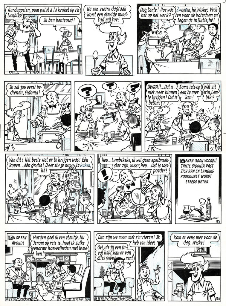 Bob et Bobette, Ce cher Barabas, planche originale à l’encre de chine pour cet album paru en 1975 chez Erasme. Dimensions : 42 cm x 31,5 cm.