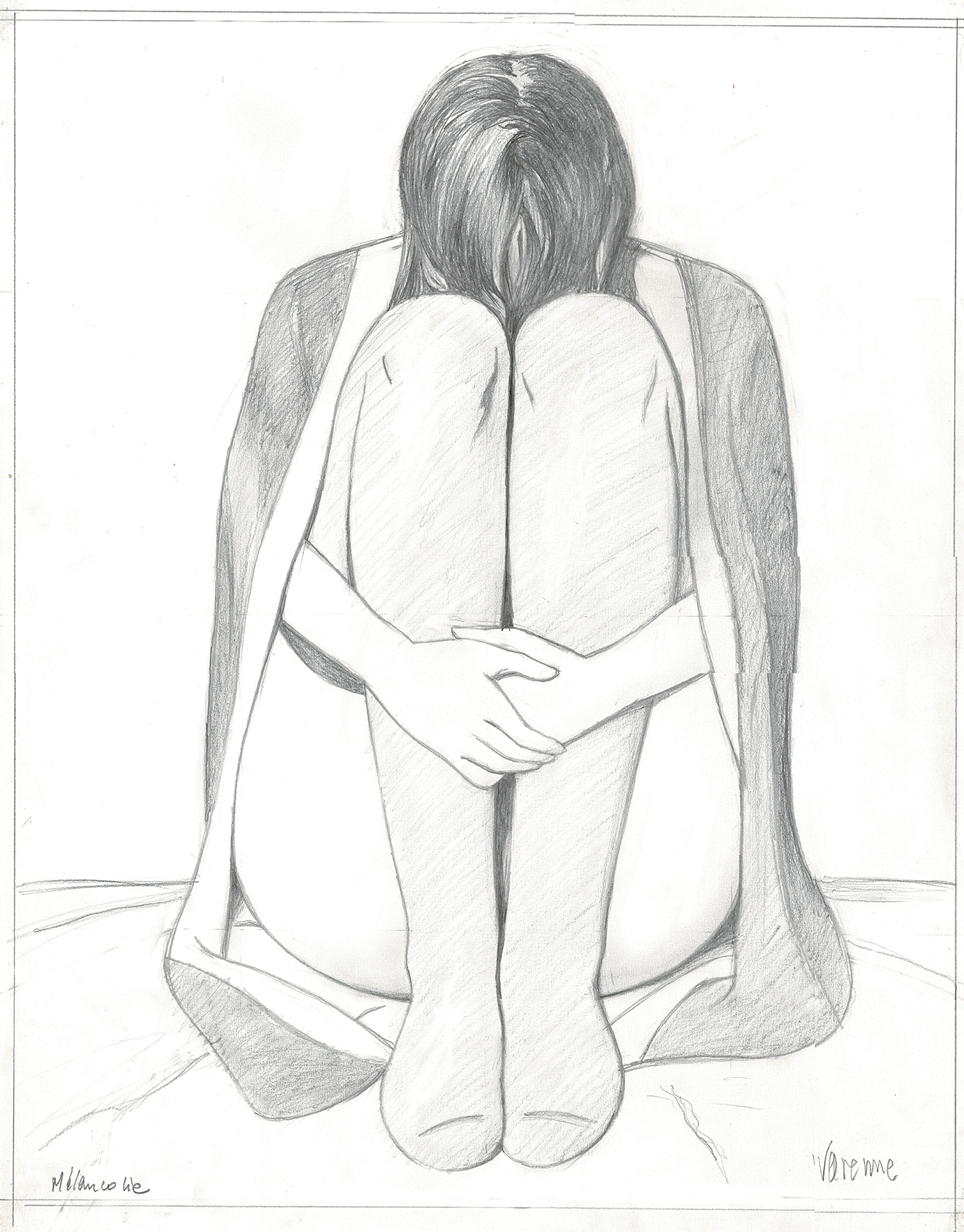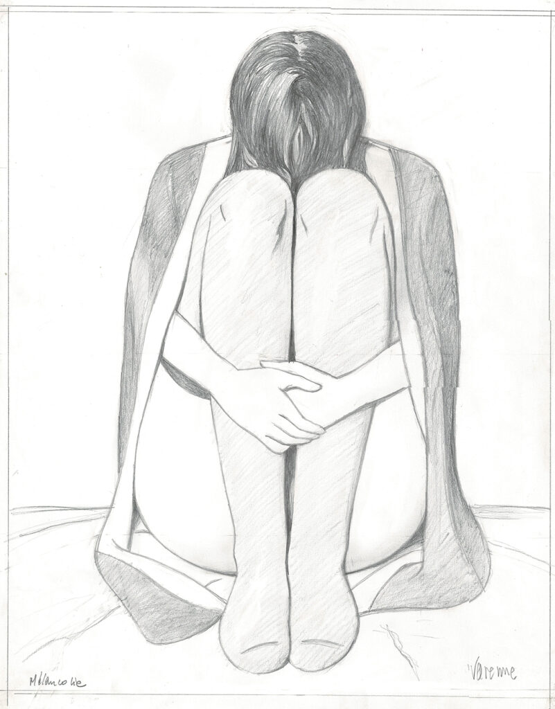 Mélancolie, dessin original à la mine de plomb très grand format. Dimensions : 65 cm x 50 cm.