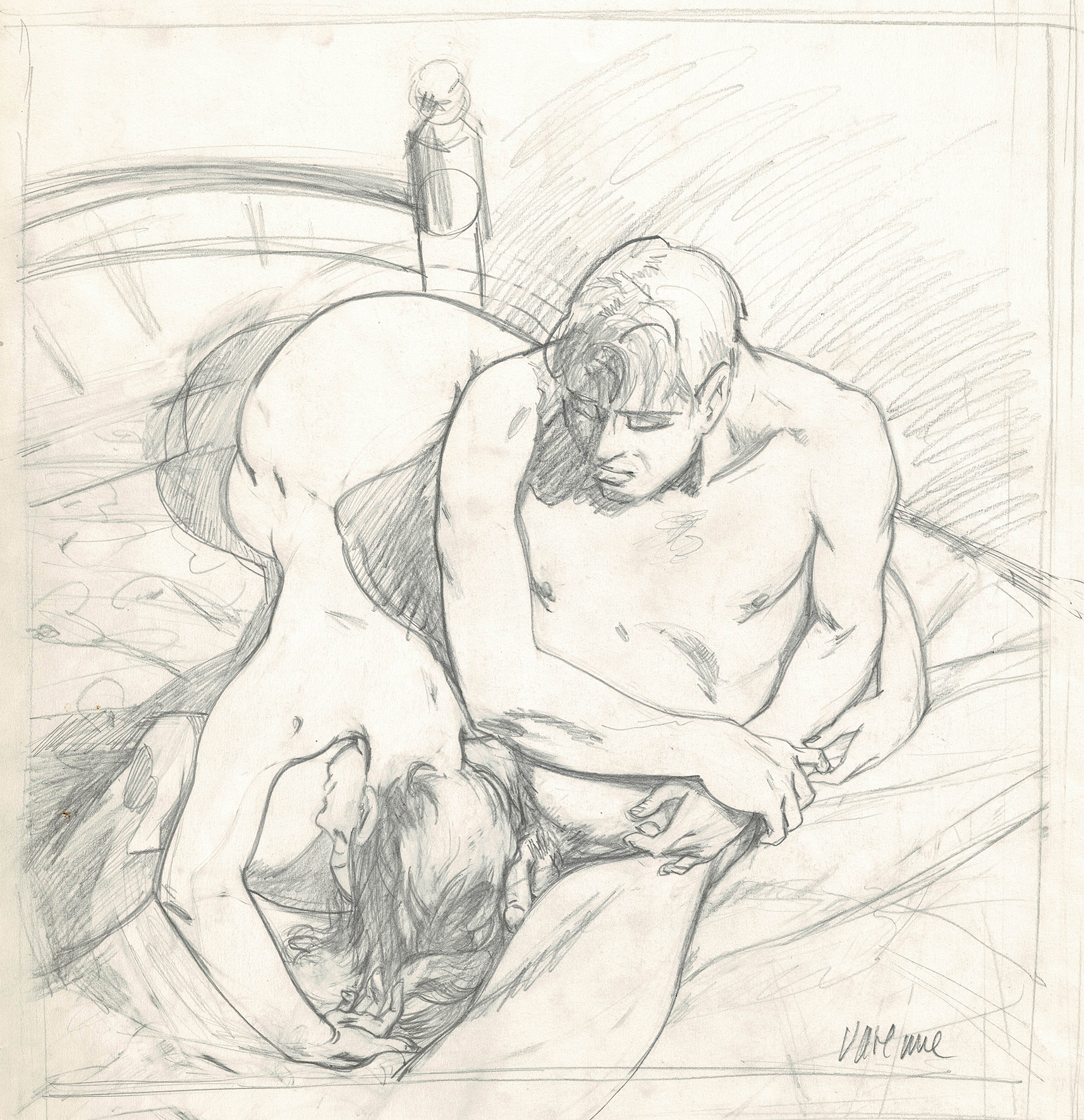 Dessin original à la mine de plomb très grand format. Dimensions : 65 cm x 50 cm.
