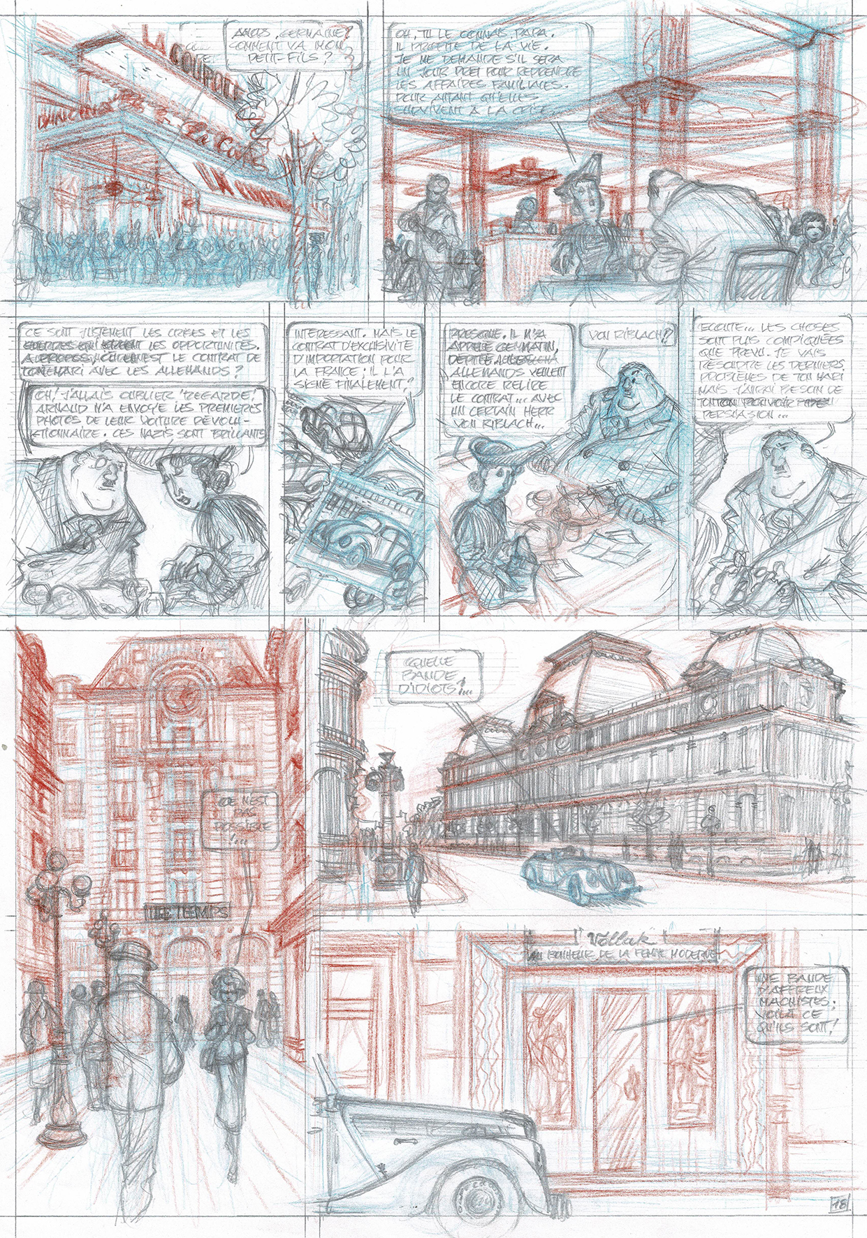 Mademoiselle J., Je ne me marierai Jamais, planche originale préparatoire à la mine de plomb et aux crayons de couleurs. Dimensions : 42 cm x 29,5 cm.