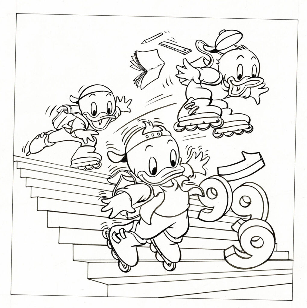 Riri, Fifi et Loulou, projet de couverture original à l’encre de chine pour le journal Mickey. Dimensions : 32,5 cm x 25 cm.