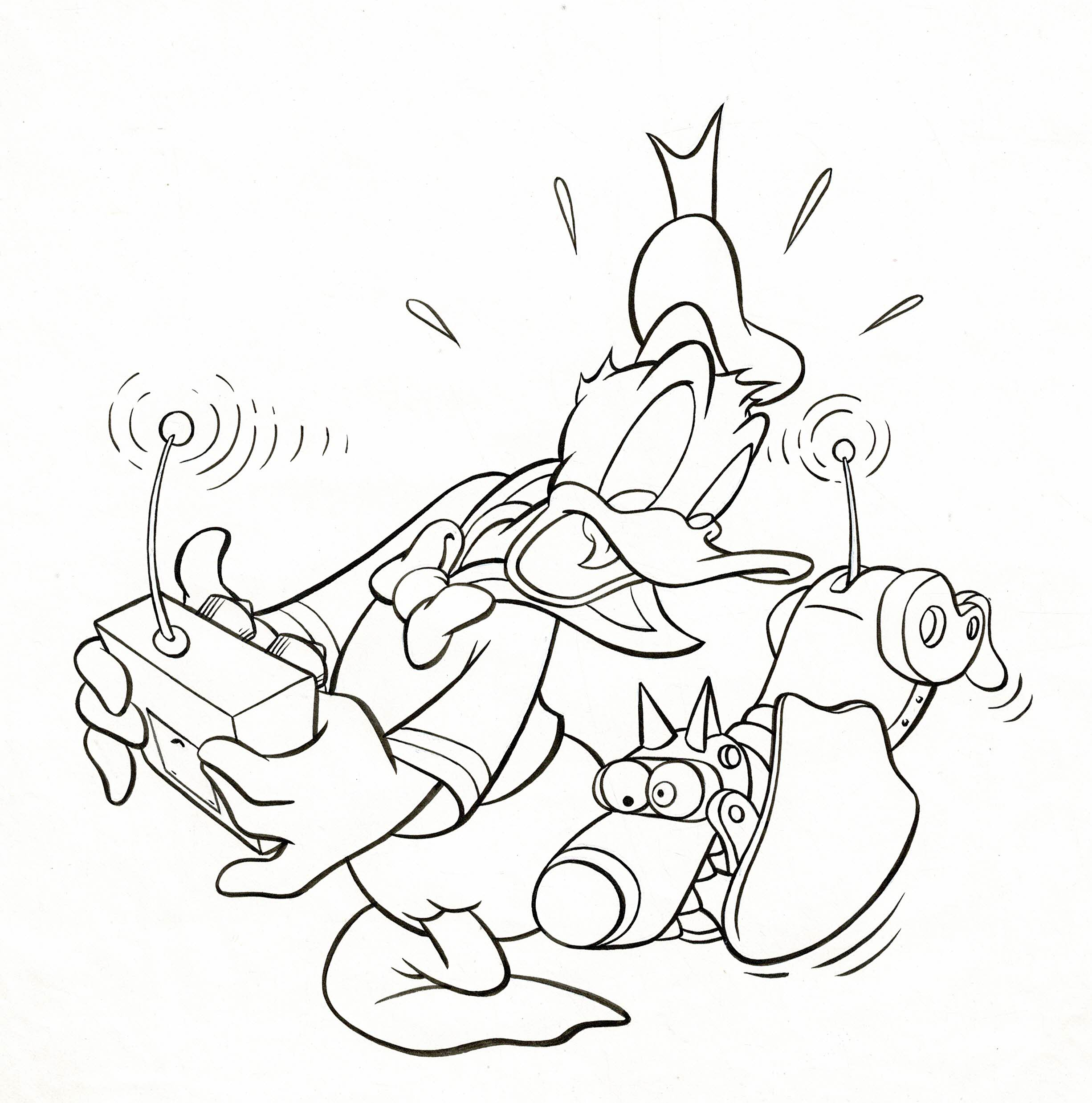 Donald et le robot chien, projet de couverture original à l’encre de chine pour le journal Mickey. Dimensions : 32,5 cm x 25 cm.