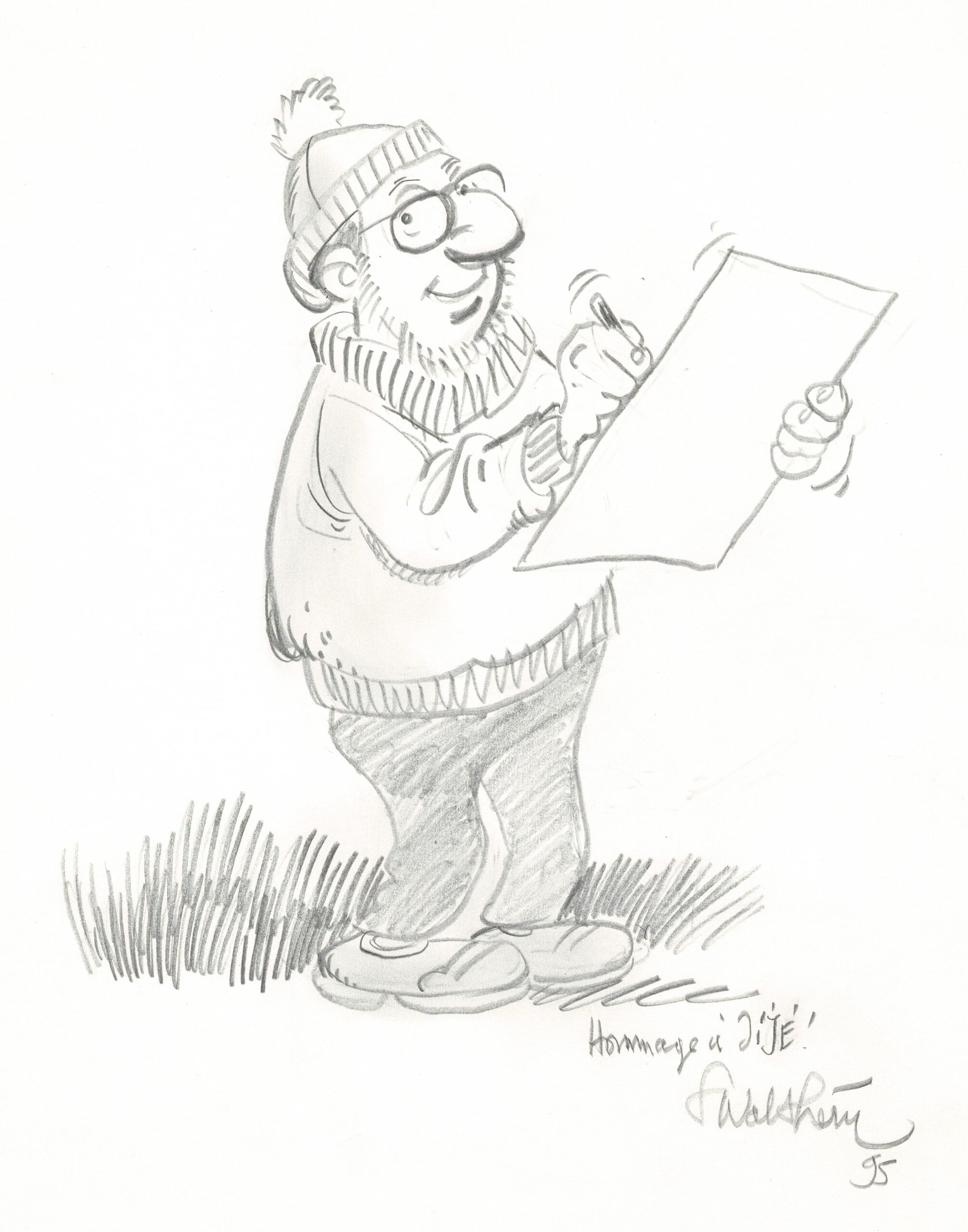 Dessin original à la mine de plomb en hommage à Jijé. Dimensions : 39,5 cm x 30 cm.