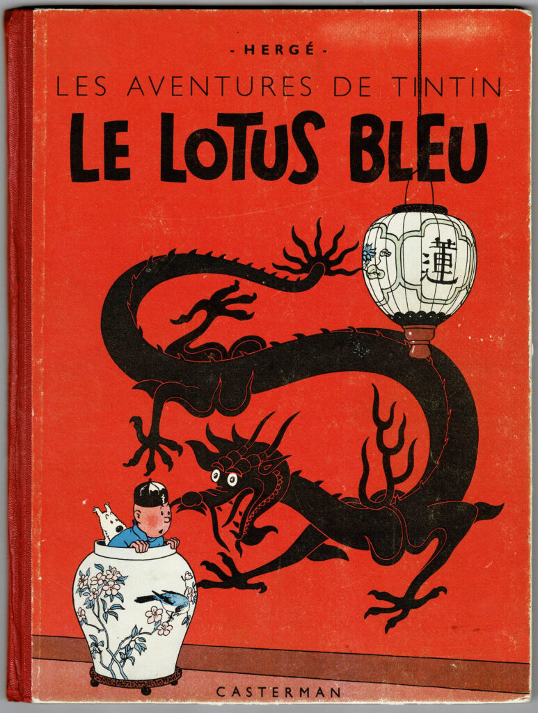 Le Lotus bleu, édition originale couleurs de 1946 (B1). Très bon état.
