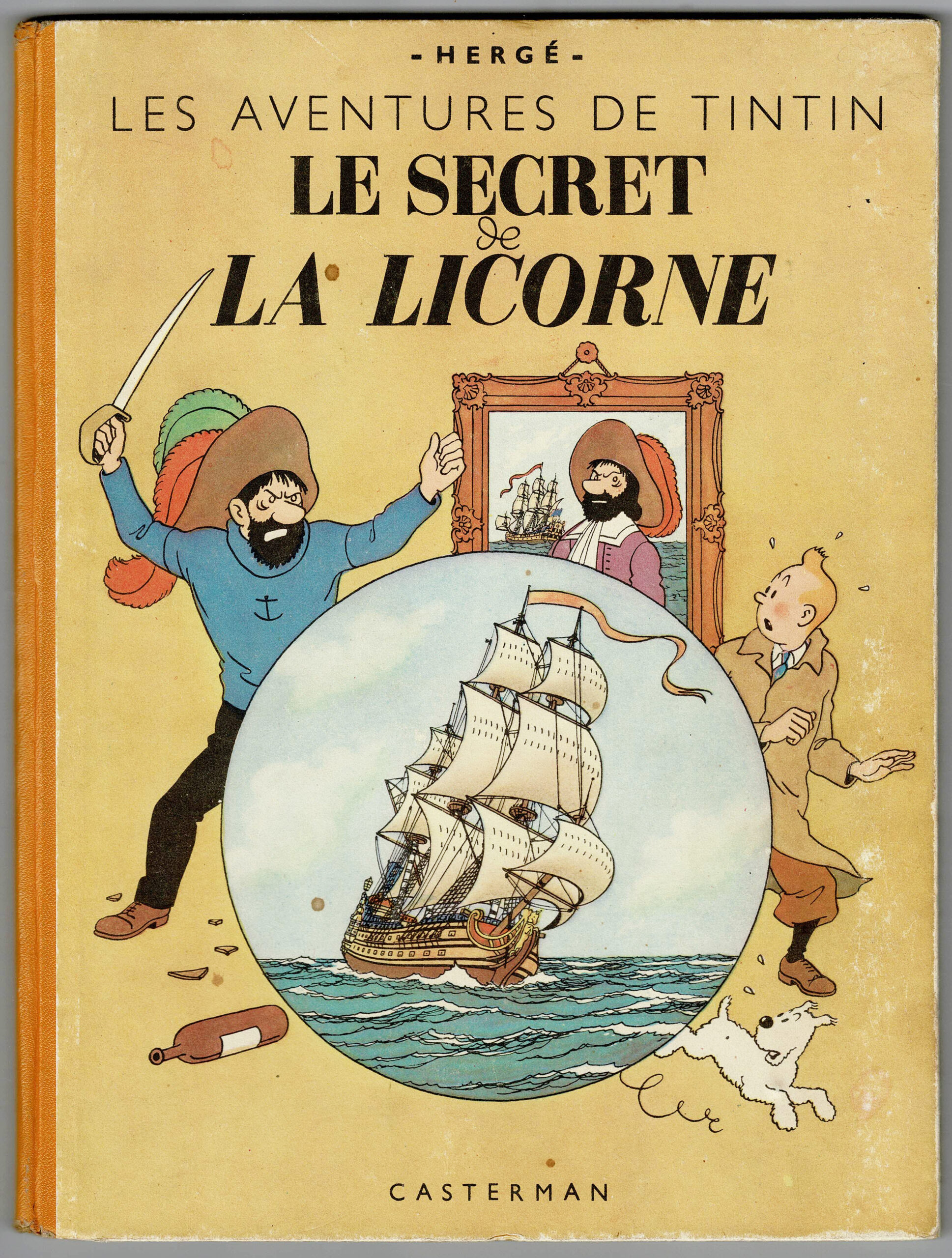 Le Secret de la Licorne, édition de 1946 (B1, dos jaune, papier épais). Très bon état.