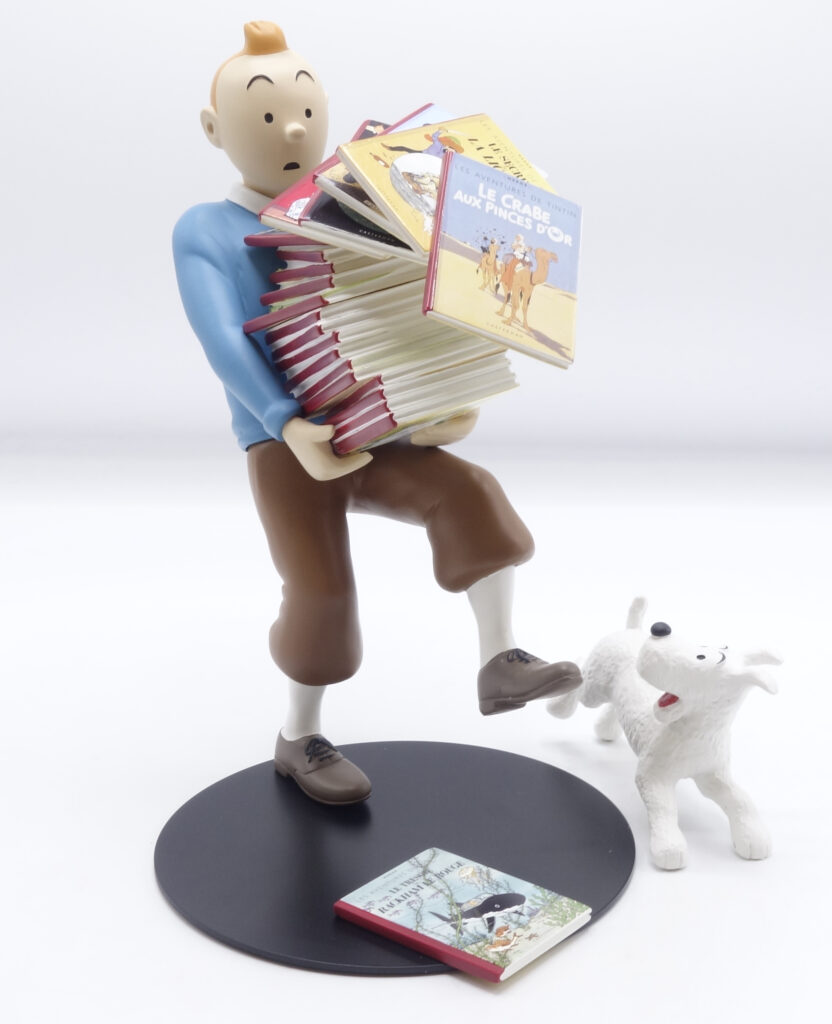 MOULINSART : Tintin, 46964, la pile de livres, 1e version, 2011, n°/2500, 26 cm, BC. (Album Rackham abîmé aux coiffes).