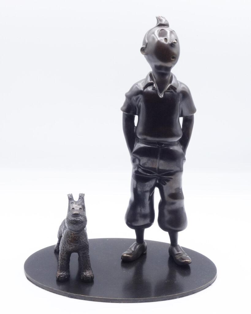 Moulinsart : Tintin, les Cigares du Pharaon, Bronze artisanal (référence Moulinsart 80670), Fonderie d’art, patine artisanale de teinte chocolat, limitée à 8 exemplaires, Hauteur 20 cm., 2020, avec boite en bois et certificat.