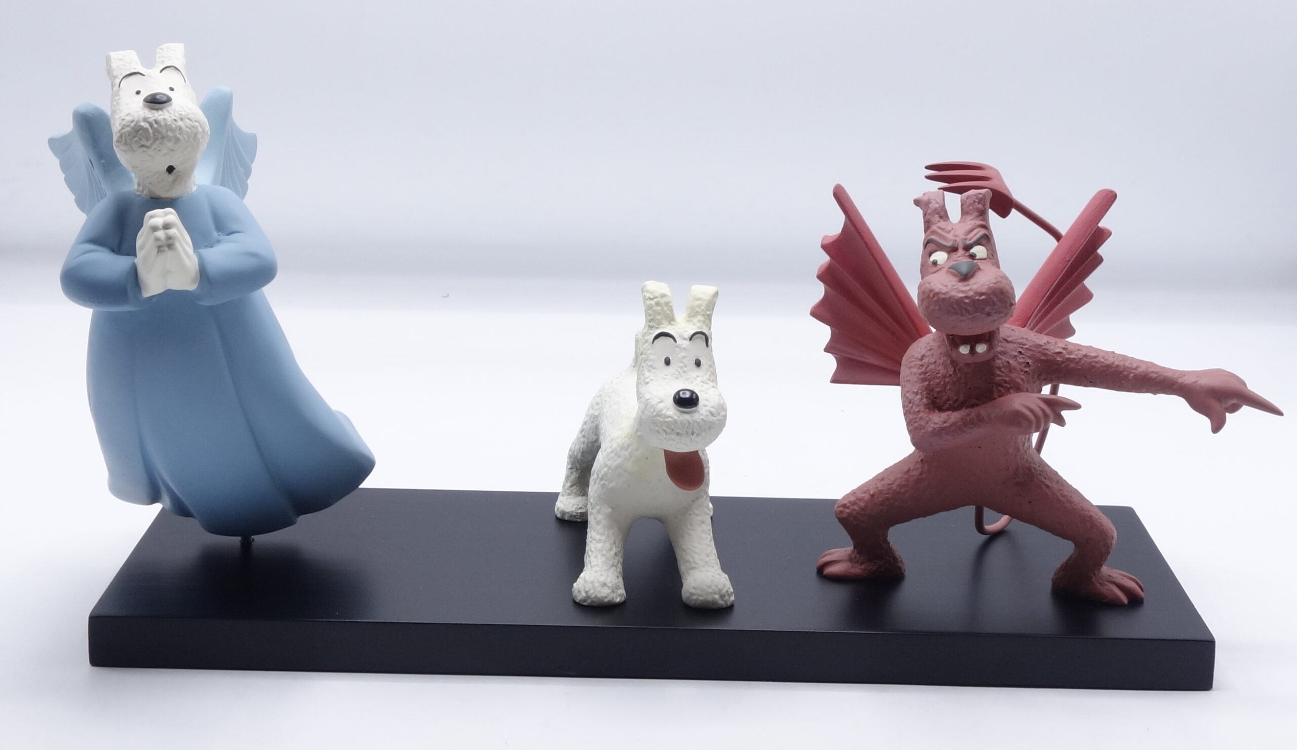 LEBLON-DELIENNE : Tintin, la tentation de Milou (10), l’ange & le diable entourent Milou déshydraté, Tintin au Tibet, 1994, n°/250. Rare.
