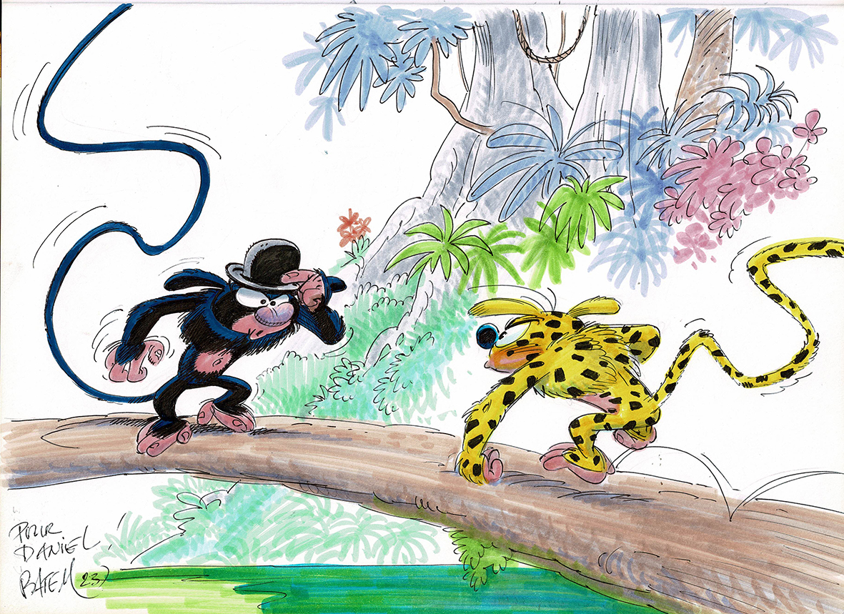 Le Marsupilami, Mars le noir en réédition, agrémenté d’une dédicace. Proche de l’état neuf.