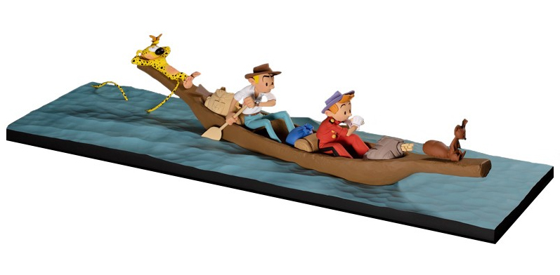 FARIBOLES : Spirou, Fantasio, Spip et le Marsu dans la pirogue, Retour de Palombie, n°/275 exemplaires, 2021, 63 cm, BC.