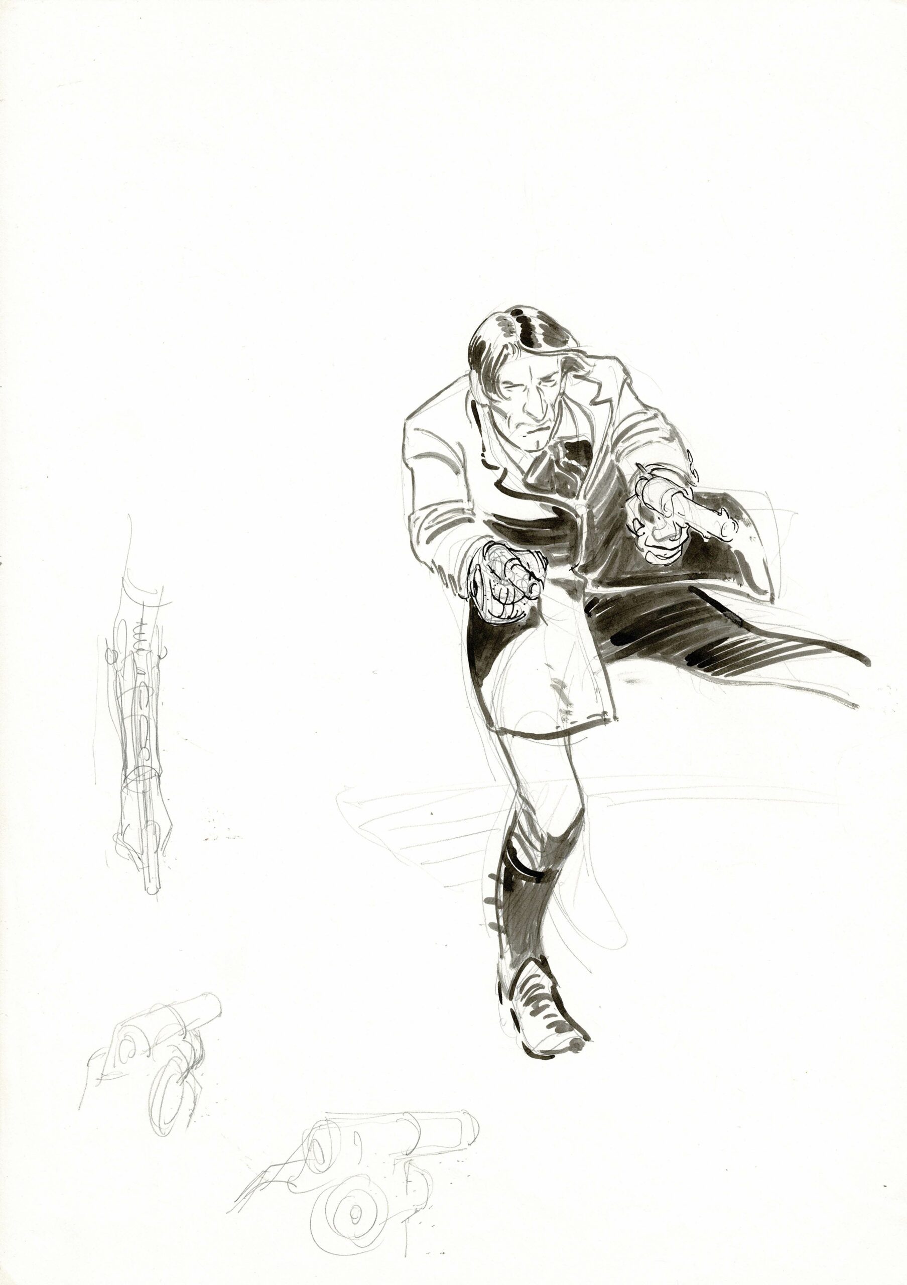 Bouncer, Etude de personnage originale à l'encre de chine et au feutre fin. Dimensions : 42 cm x 30 cm.