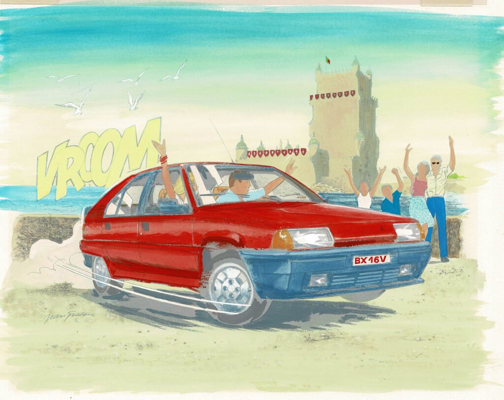 Michel Vaillant, Mise en couleurs originale et son film noir réalisée pour le Calendrier Citroên. Dimensions : 29 cm x 23,5 cm.