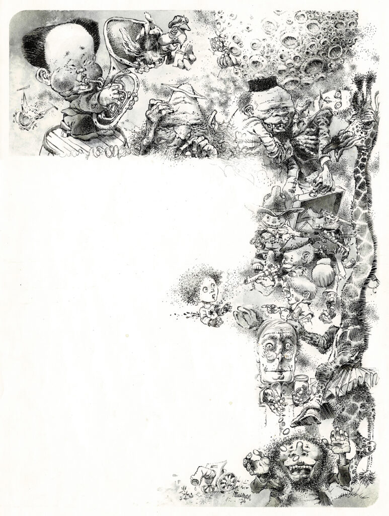 Dessin original à l’encre de chine et au lavis publié dans Fluide Glacial en 1976. Dimensions : 43,5 cm x 33,5 cm.