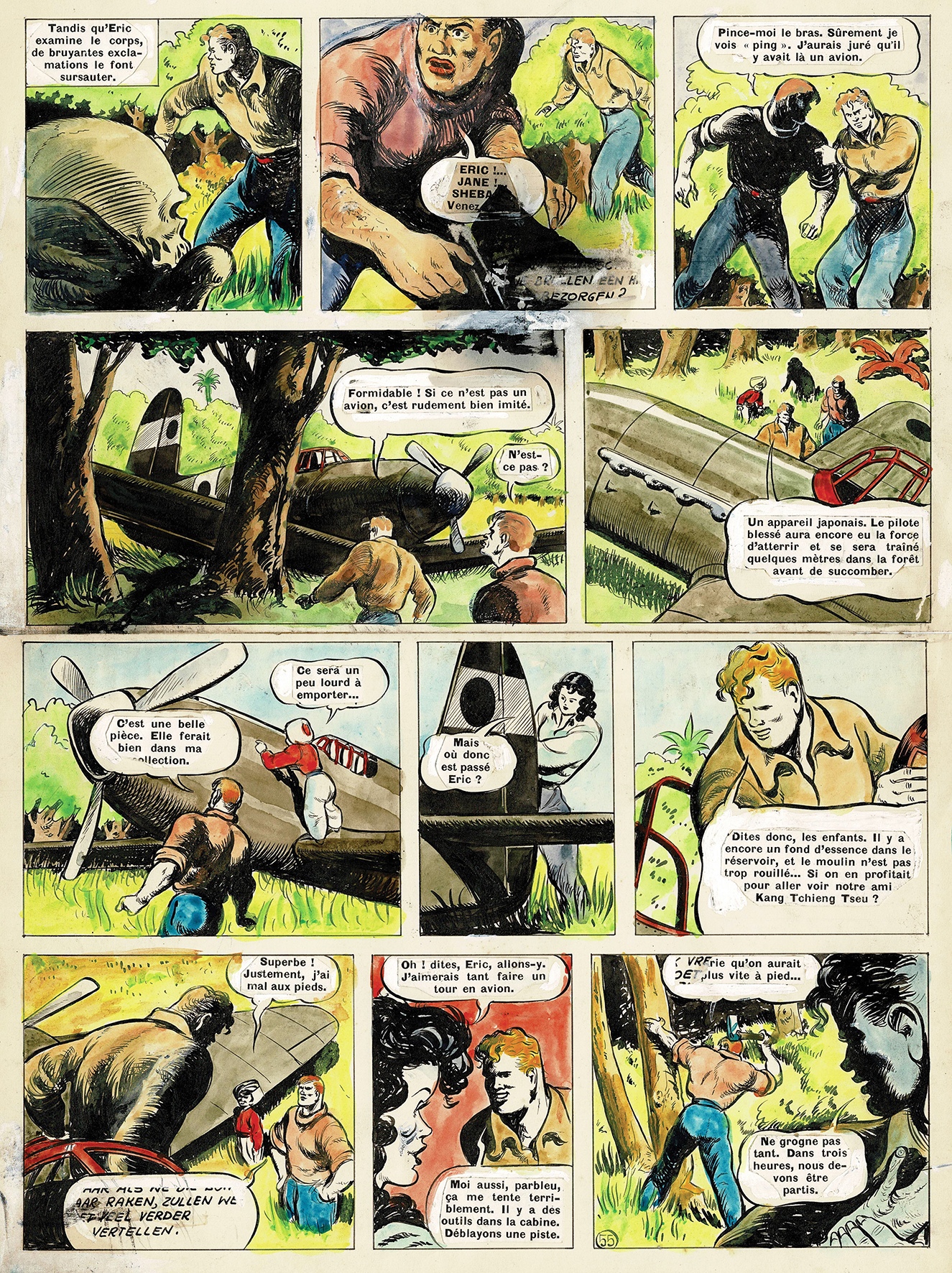 L’Epervier Bleu, L’île aux perles, planche originale à l’encre de chine et à l’aquarelle. Dimensions : 44,5 cm x 31,5 cm.