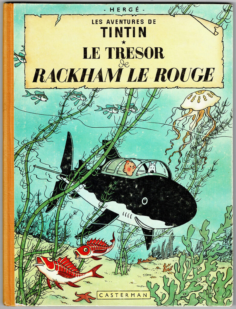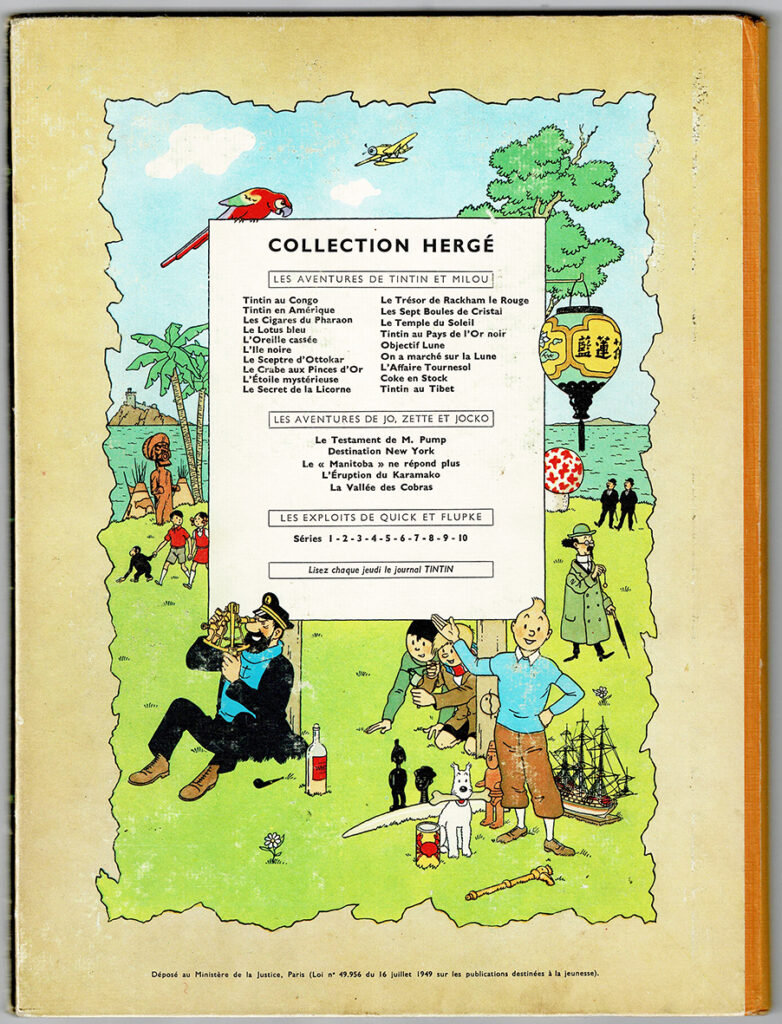 On a marché sur la lune (eo, be), Trésor de Rackham le rouge (B34, tbe), 7 Boules (B29, tbe), Temple (B30, tbe), Sceptre (B11, be). Ensemble de 5 albums.