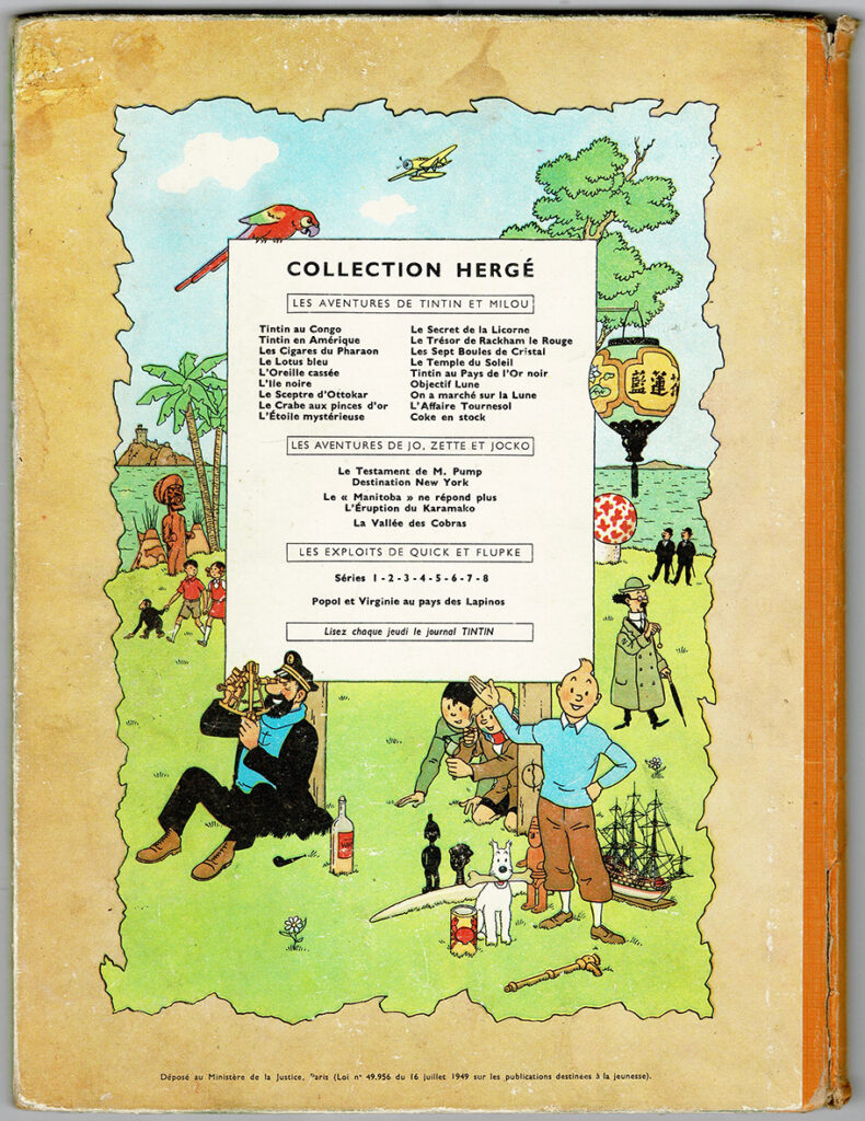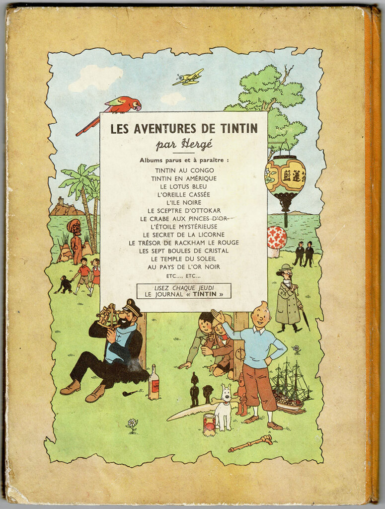 Lot n° 587 Tintin – vendu 190 € TTC [ Estimation 100-150 ] Tibet (eo, be), Or Noir (eo, em), Etoile (b29, tbe), 7 Boules (B24, em), Licorne (B15, em). Ensemble de 5 albums.