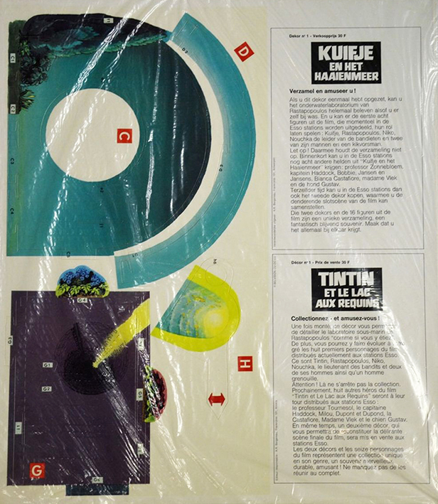 Tintin et le lac aux requins, décor Esso en carton non monté représentant la villa Syldave (années 70). Etat neuf (sous blister).
