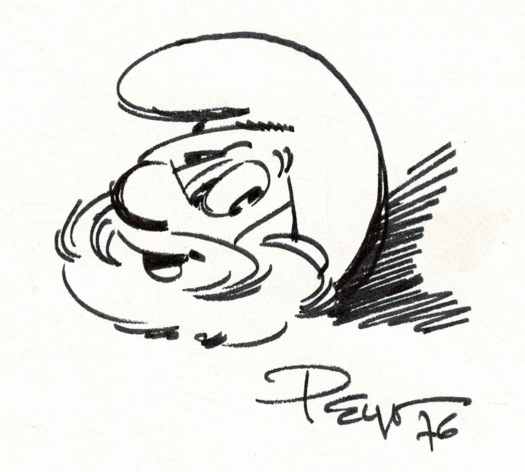 Le grand Schtroumpf, dédicace réalisée sur une feuille A4.