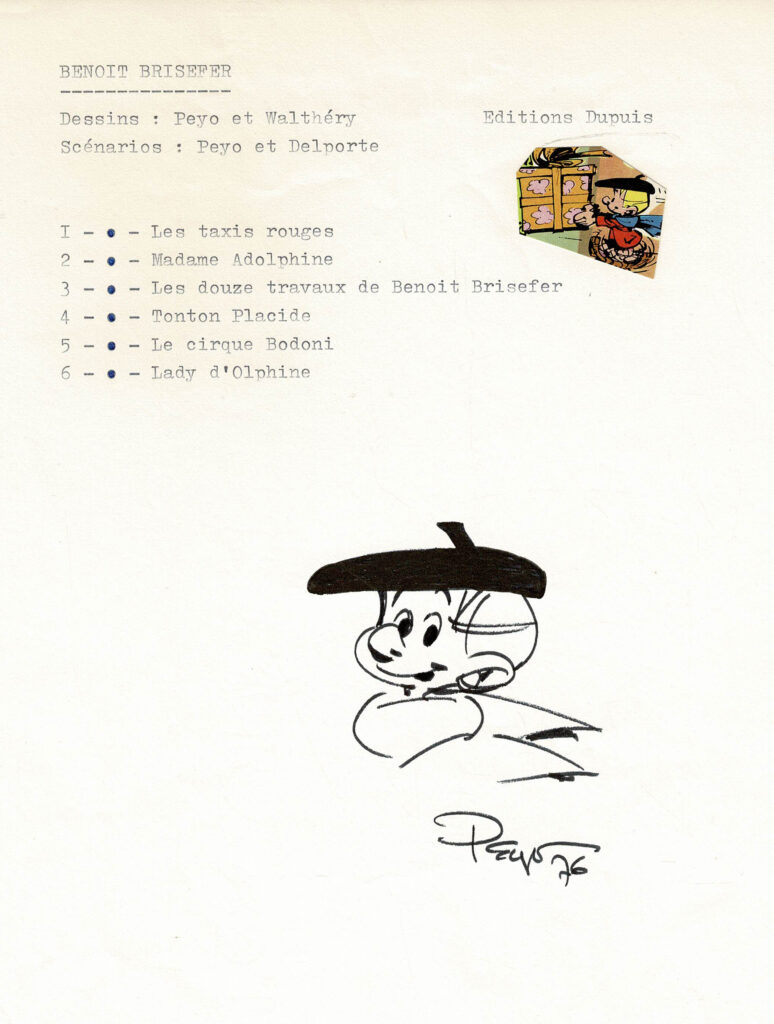 Benoît Brisefer, dédicace réalisée sur une feuille A4.