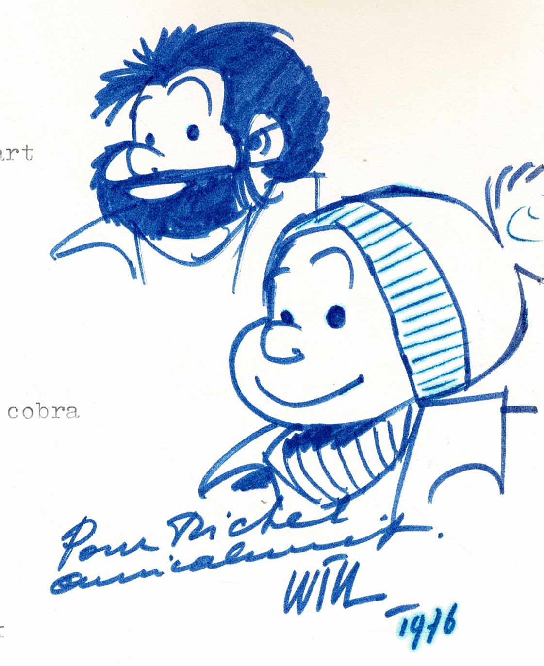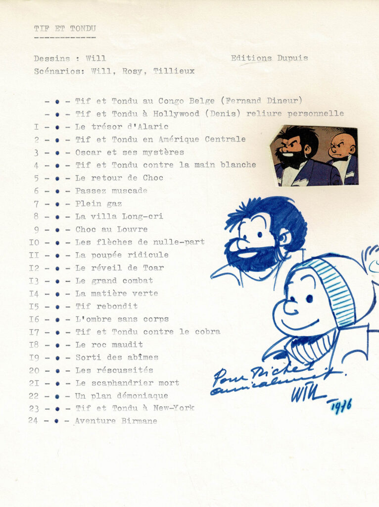 Tif et Tondu, dédicace réalisée sur une feuille A4.