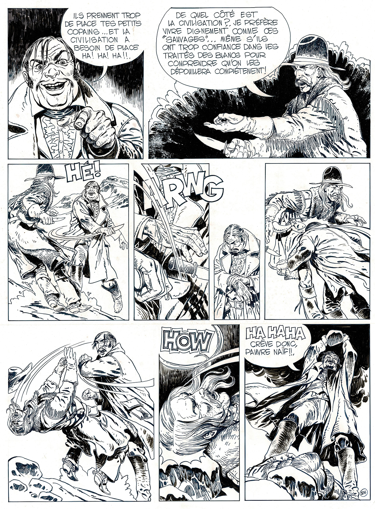 Jonathan Cartland, Tome 1, planche originale à l’encre de chine pour cet album paru en 1975 chez Dargaud. Dimensions : 59,5 cm x 46 cm.